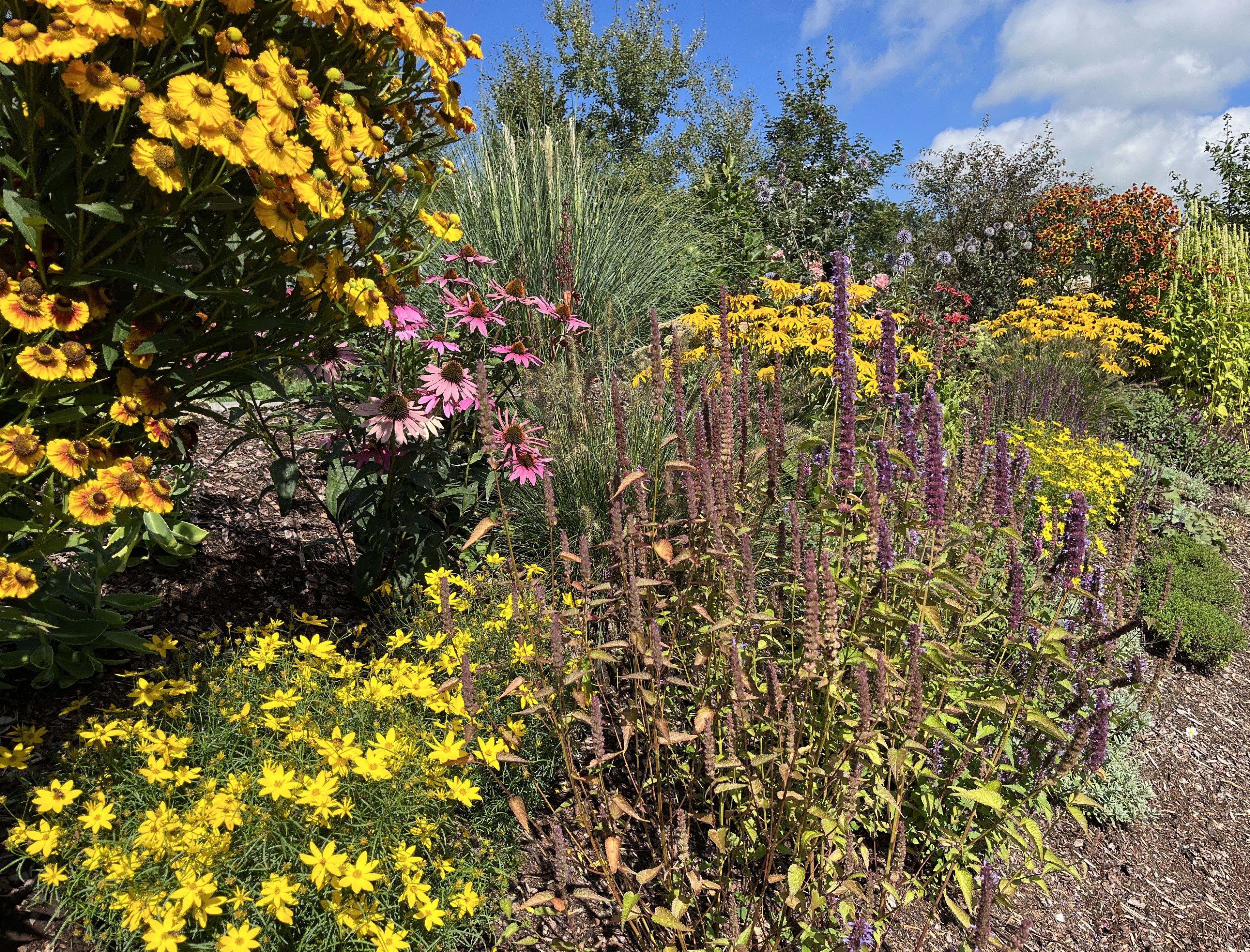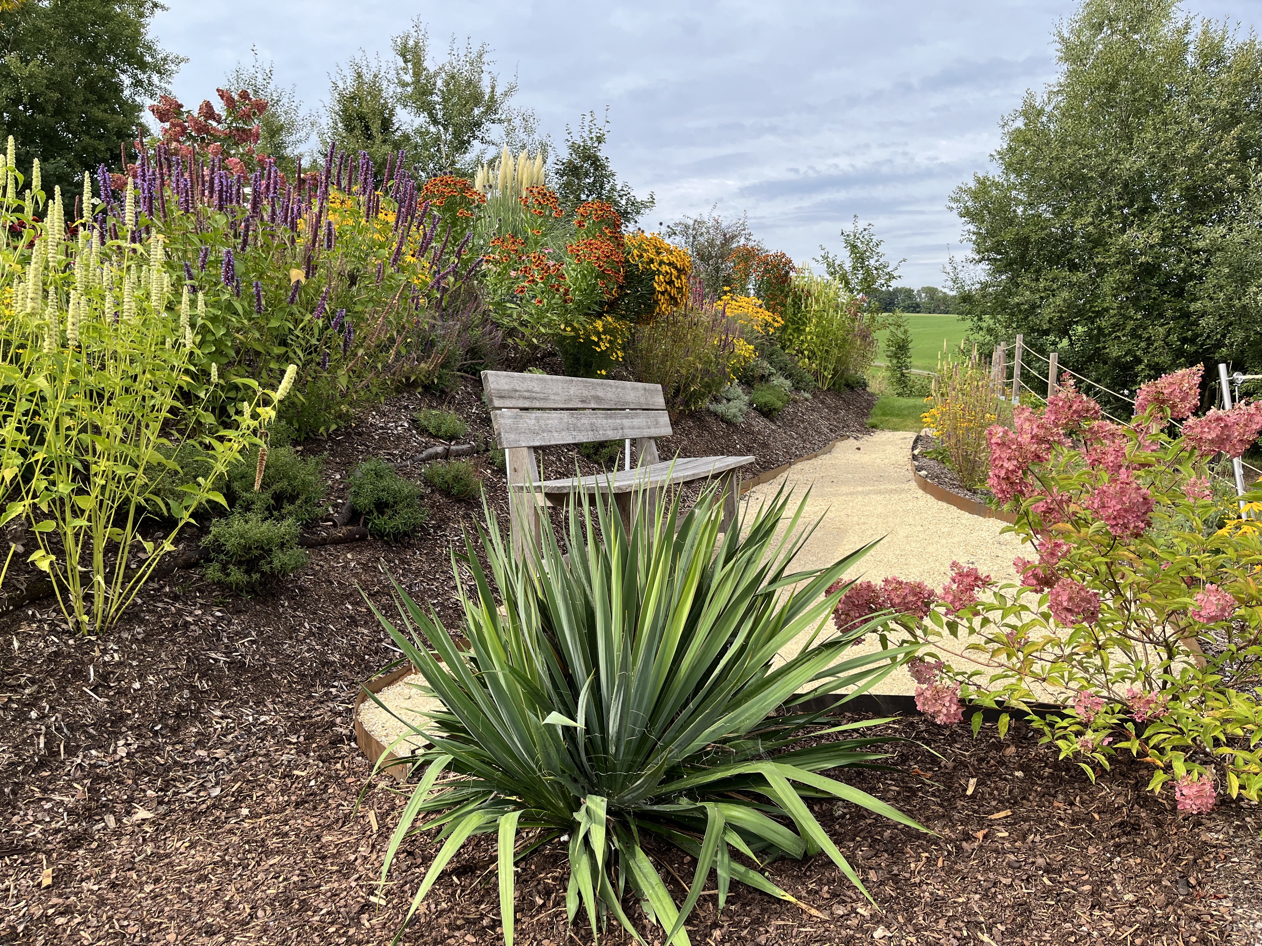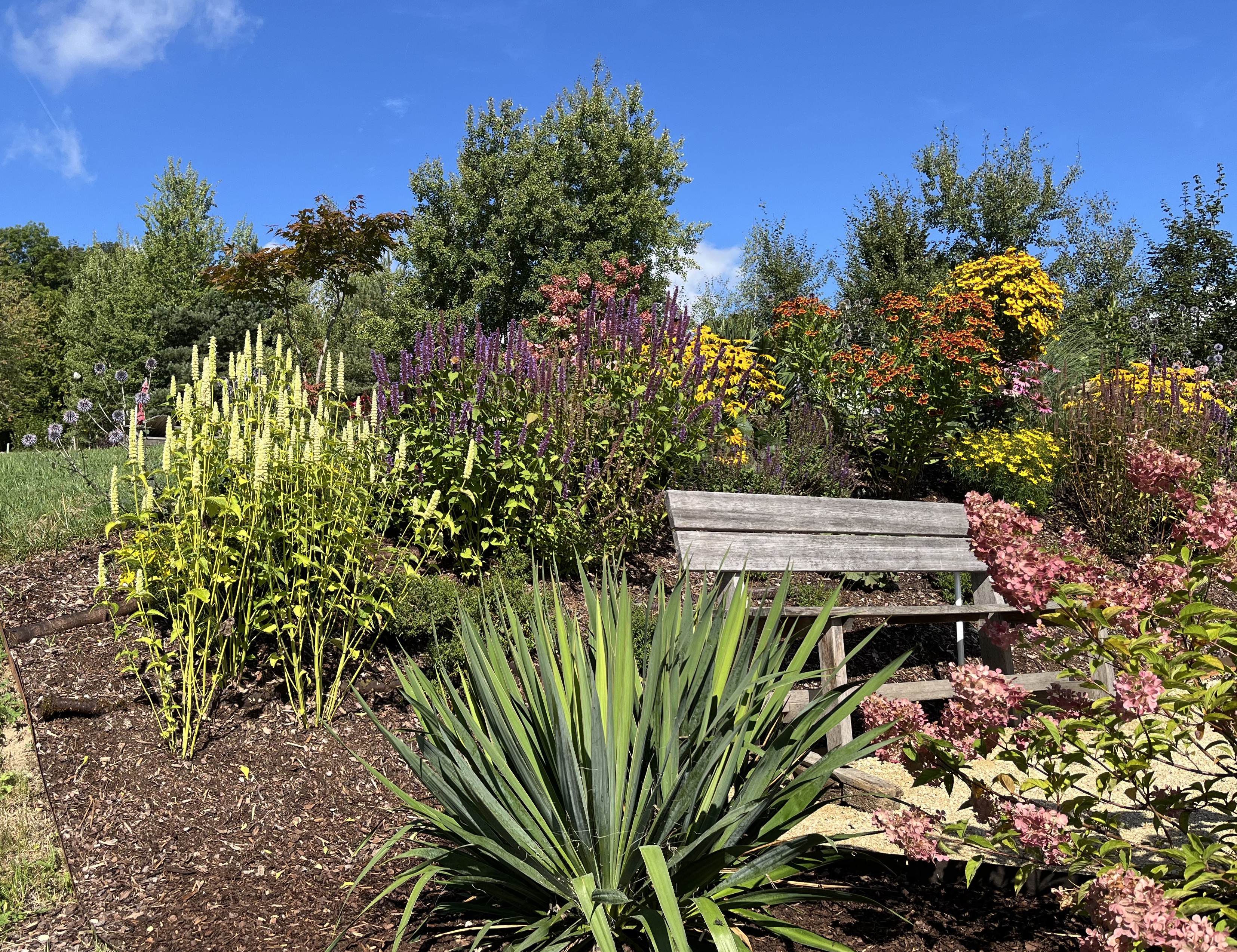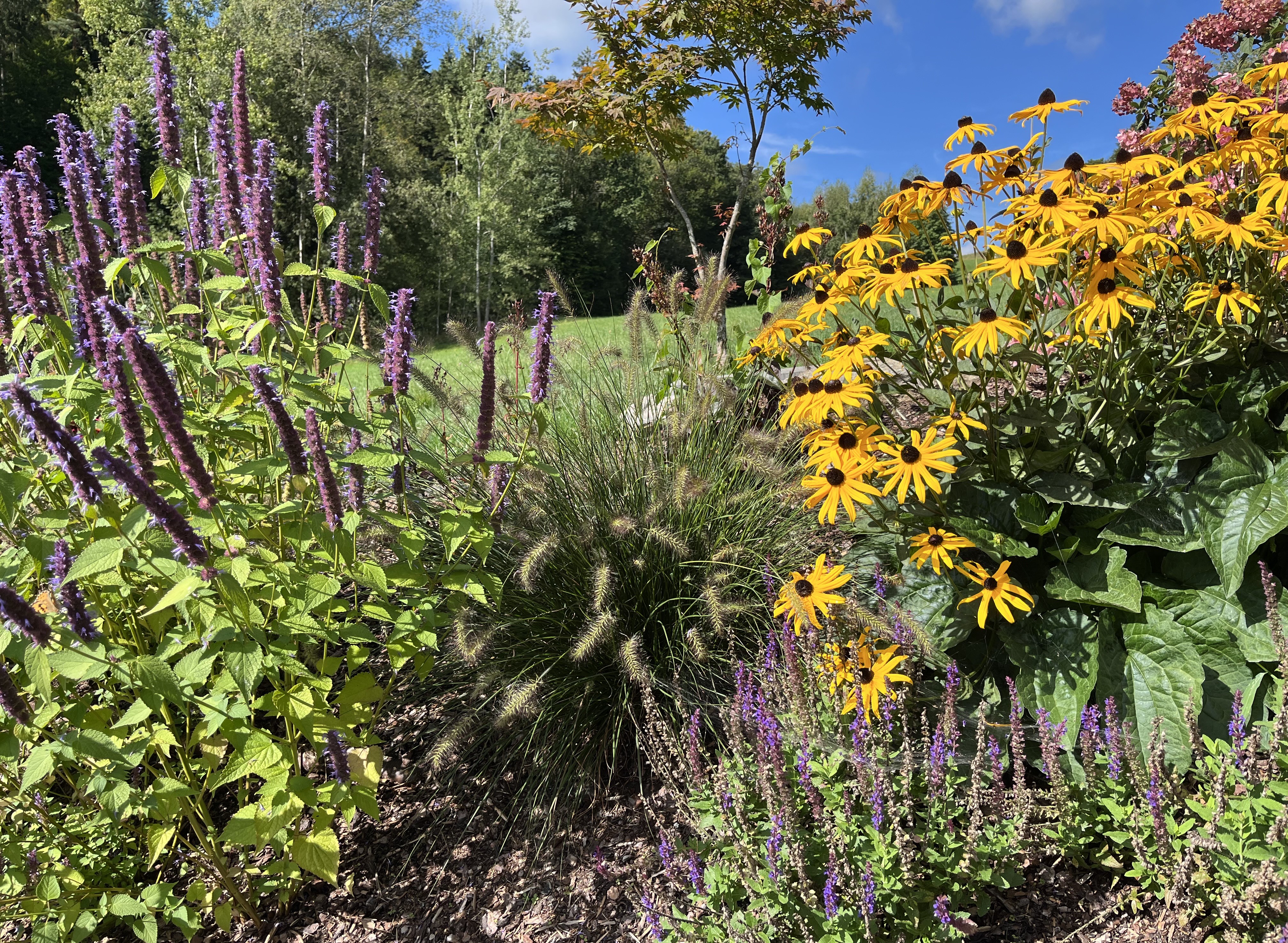 What’s been happening since July (!)? I did (finally) finish the “stone” path … and asked myself why I didn’t think of the solution at the beginning. The flowers on the slopes have really filled in and look wonderful. The set of metal stairs was finally installed … but with some hiccups. But, to be honest, I’ve pretty much just been enjoying the garden and our surroundings. That was the whole point of the move, after all. So, let’s get into it.