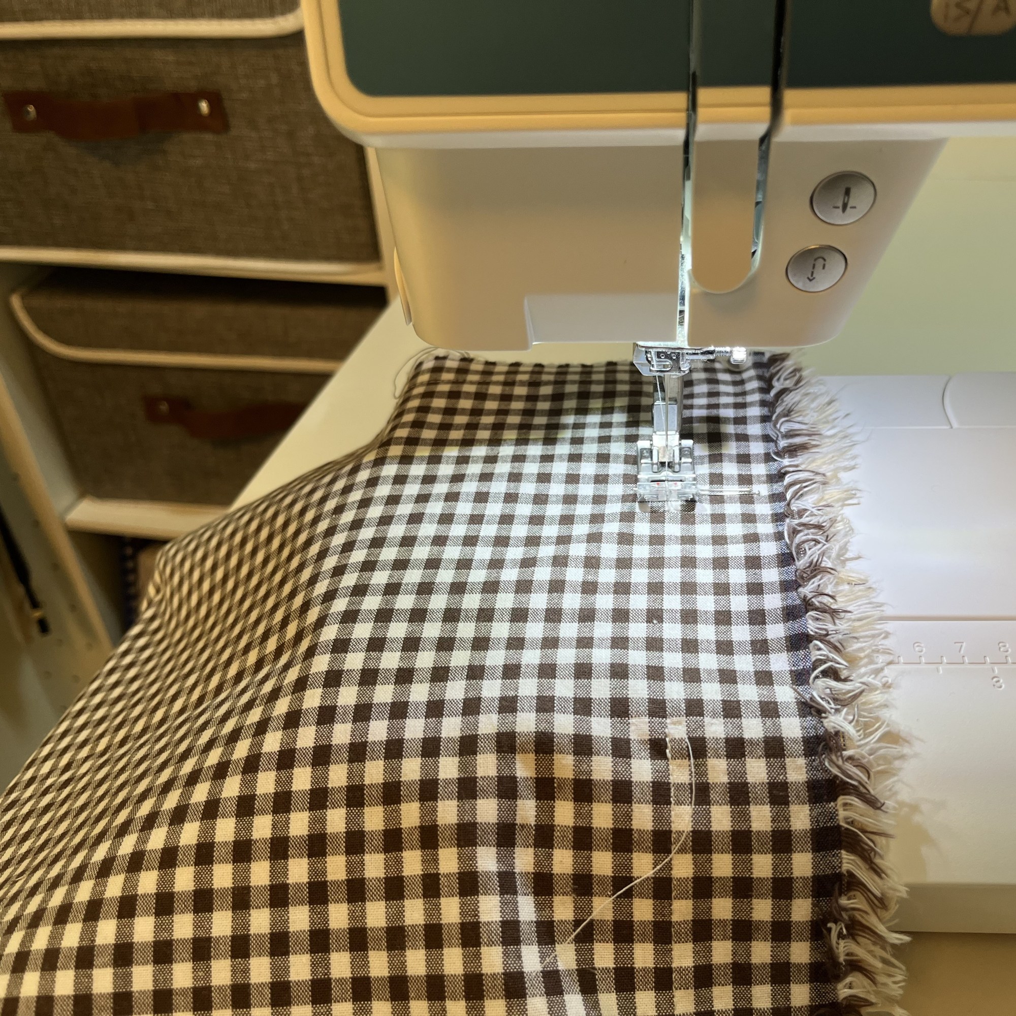I have to admit, I did miss my old desk for this project. My old desk was 2 square meters and perfect for measuring and cutting large fabric swaths. Smaller house, smaller desk. So, I just used the dining room table itself. I tossed around the idea of doing letter corners but decided against it. They are very time consuming and, for something like a tablecloth – where you rarely even see the corners – it seemed not worth the effort. For napkins, yes; but, not for tablecloths.