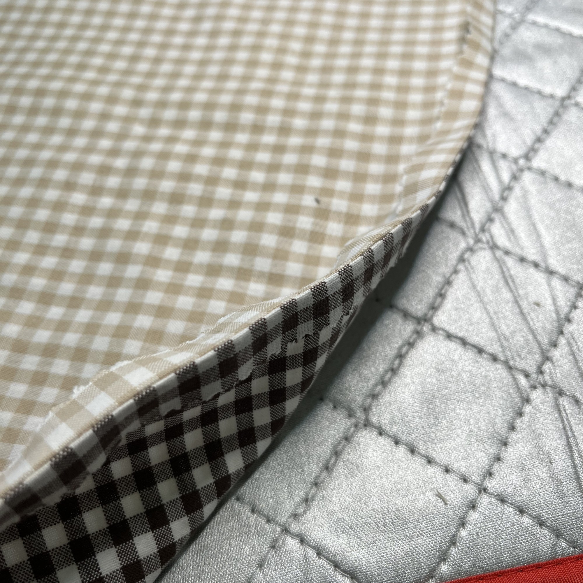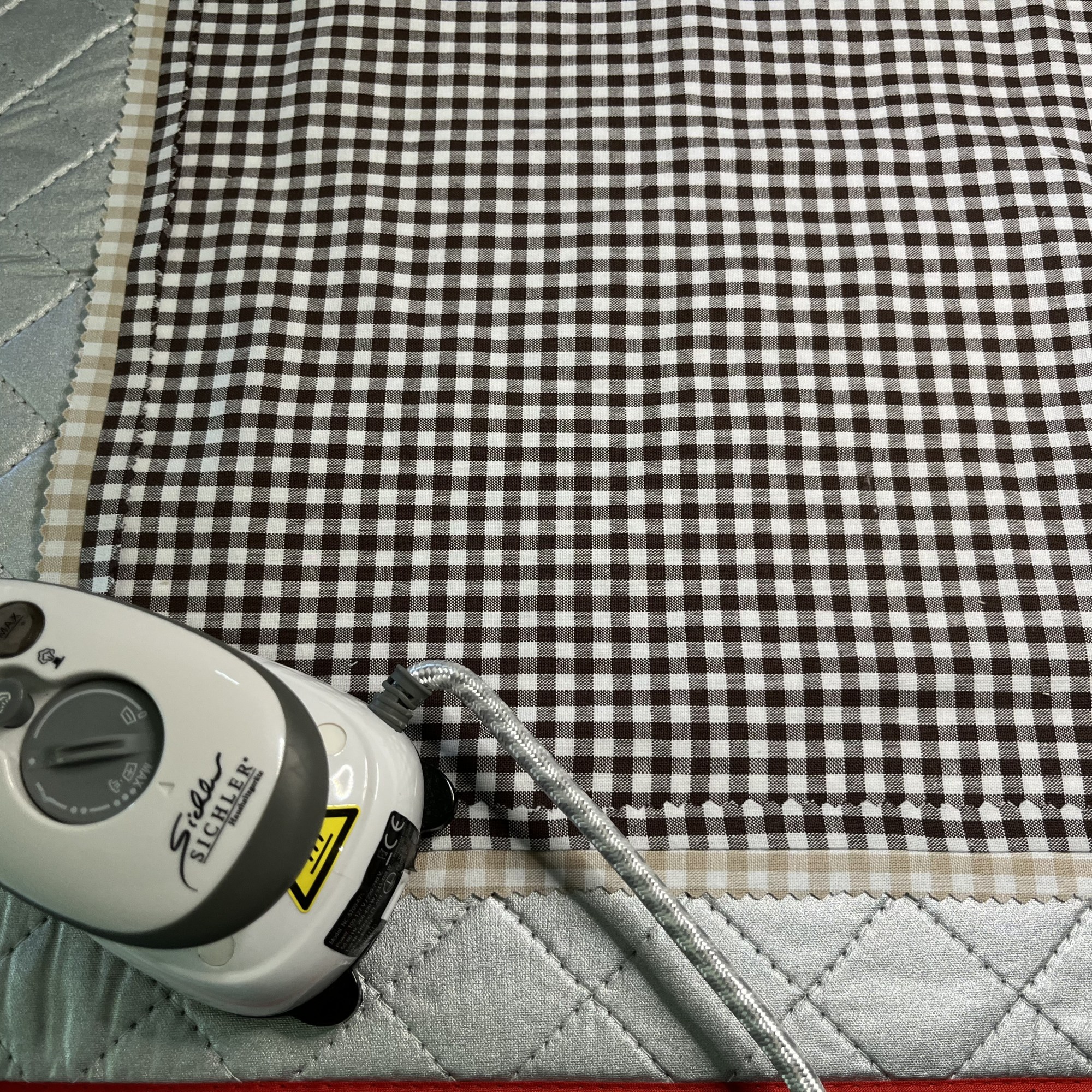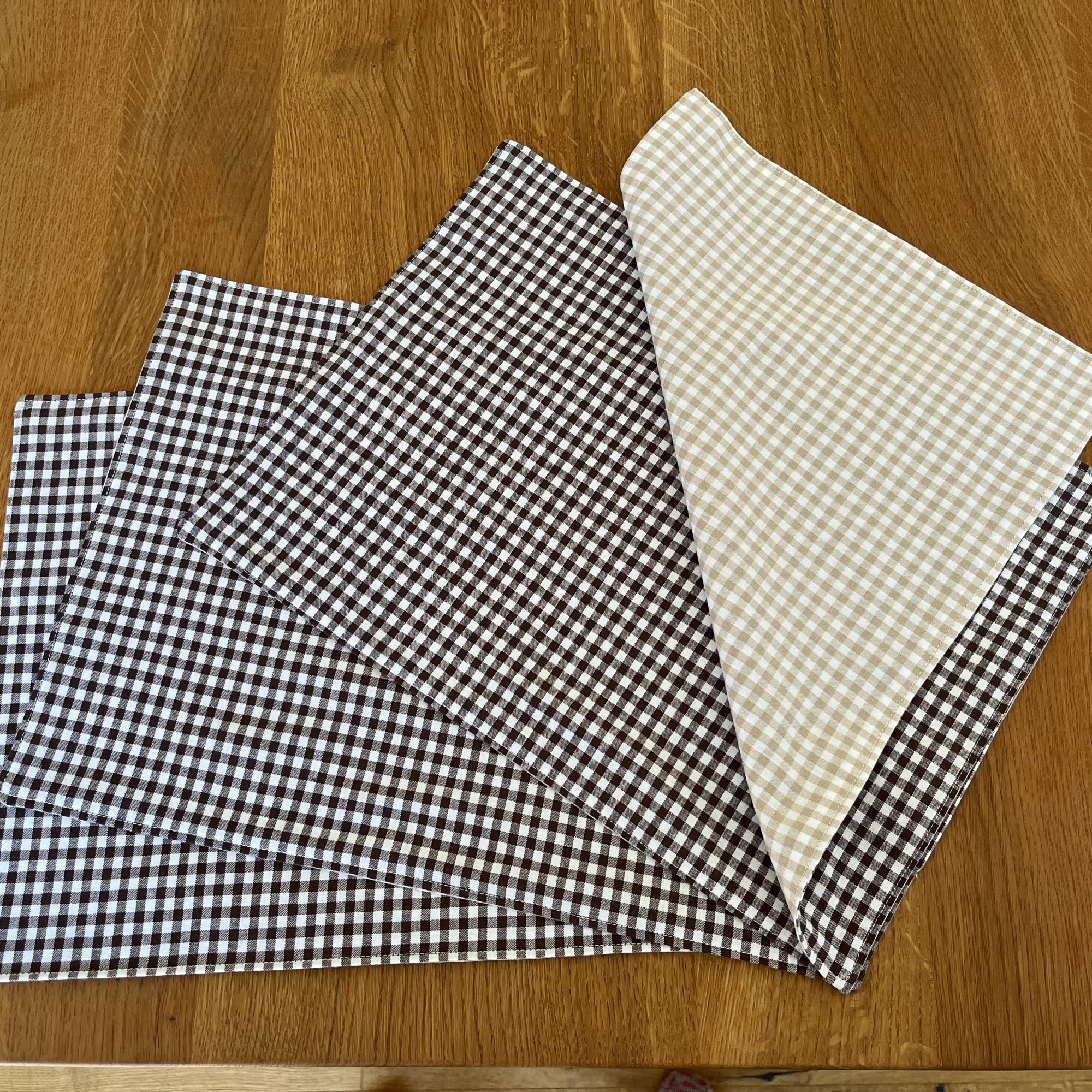 Along with this, I did some quick sewing to make some more placemats, now that I had given away the majority of what we had. Way back in the crafts closet, I had a small quantity of beige and brown checked fabric, just enough to make some double-sided placemats. No embroidery or any additional decorations.