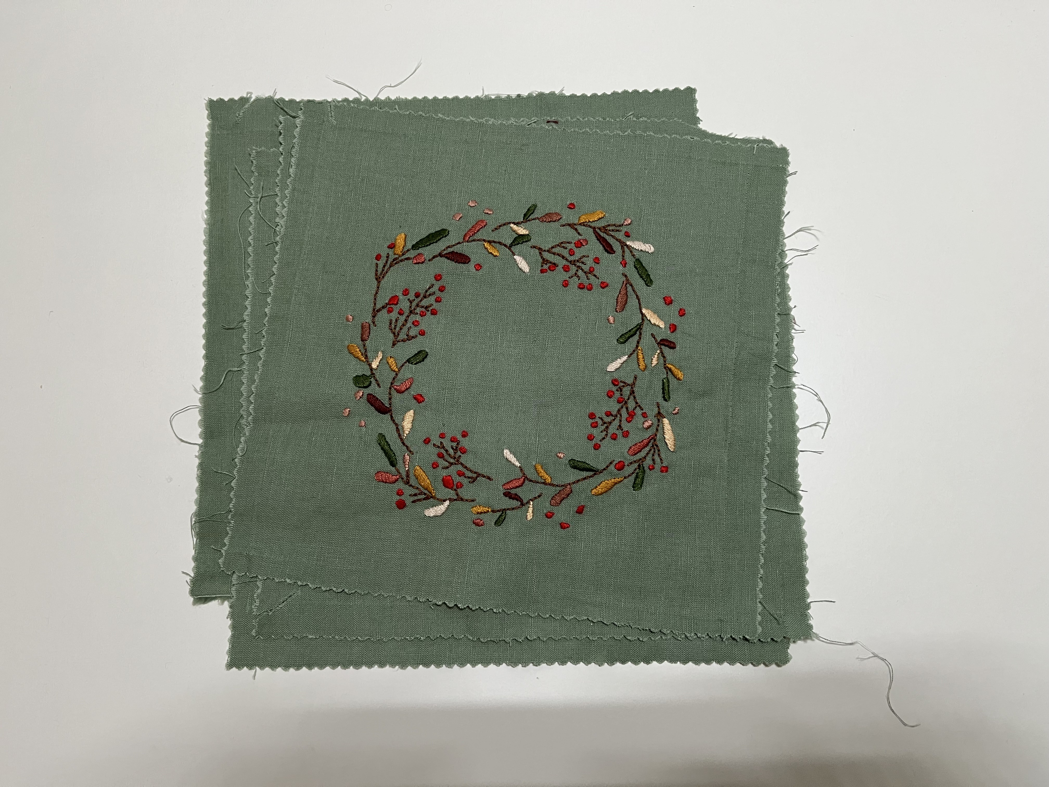Once the embroidery is done, I’ll sew the front/back sides together to make the actual placemats.