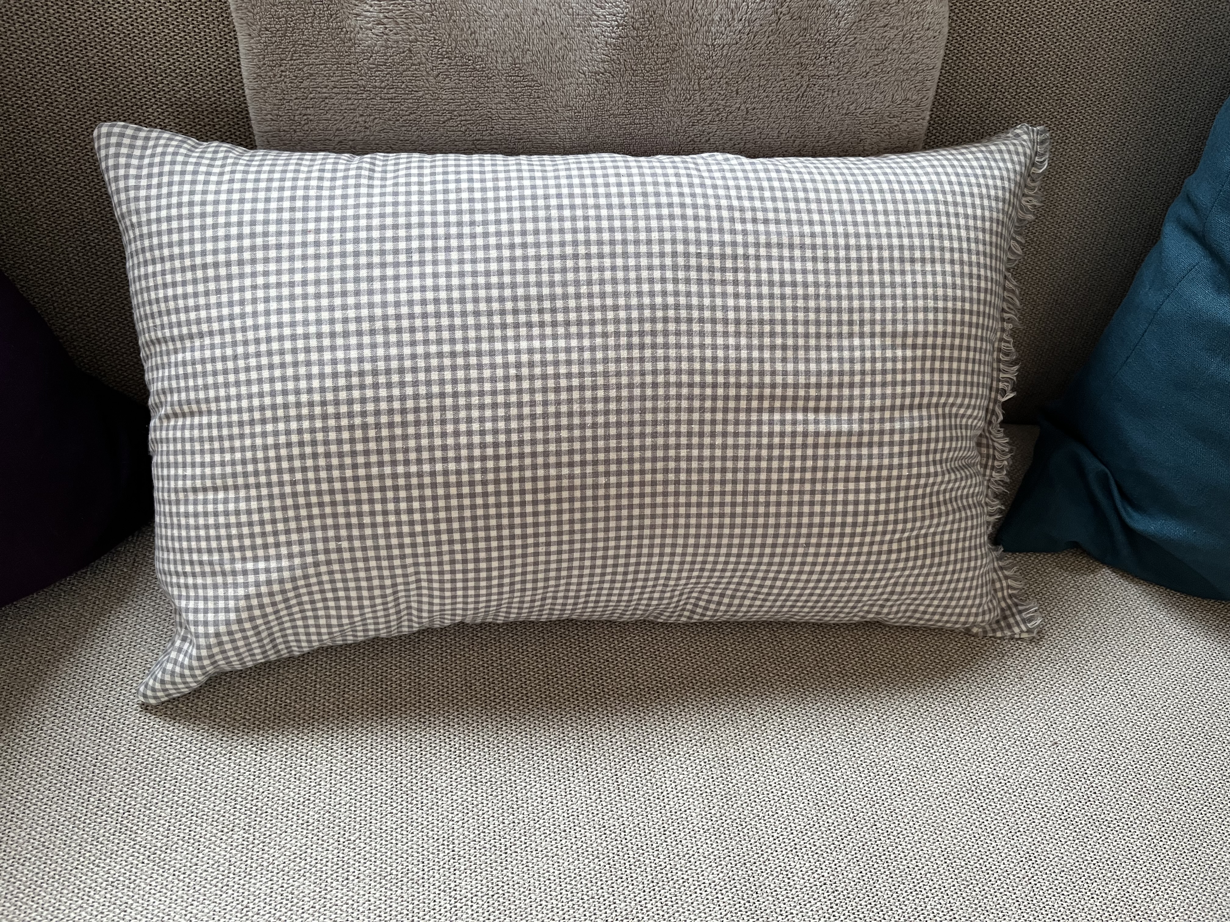 I went with two types of the eggplant and petrol colors: a saturated and a pastel version. The half-pillow in the middle was kind of a last minute idea. I had some old grey/white checked fabric from one of my very first Chicken Scratch projects and used that. Too much grey? If I were to change the fabric of the half-pillow, what color do you think would work well?