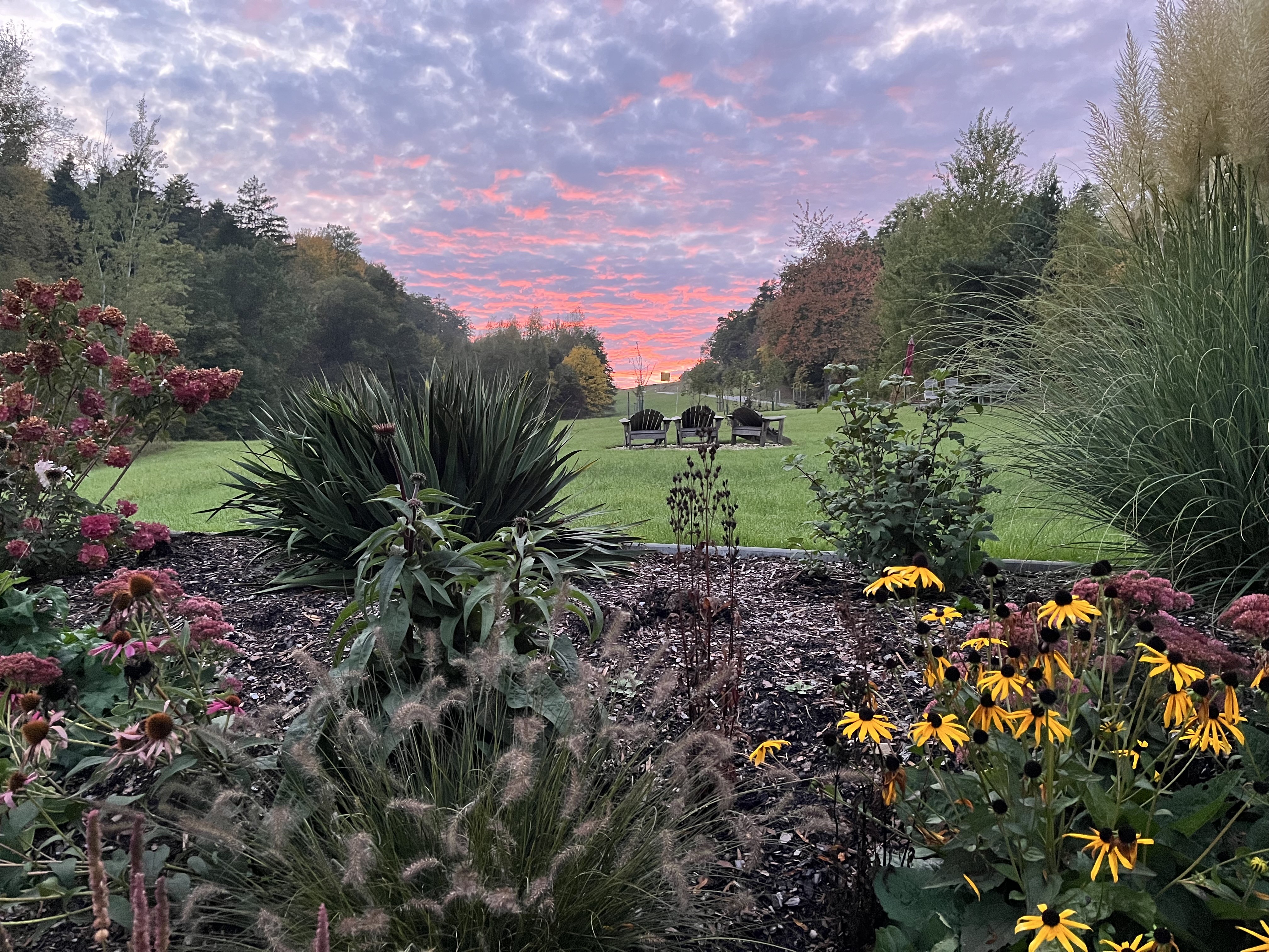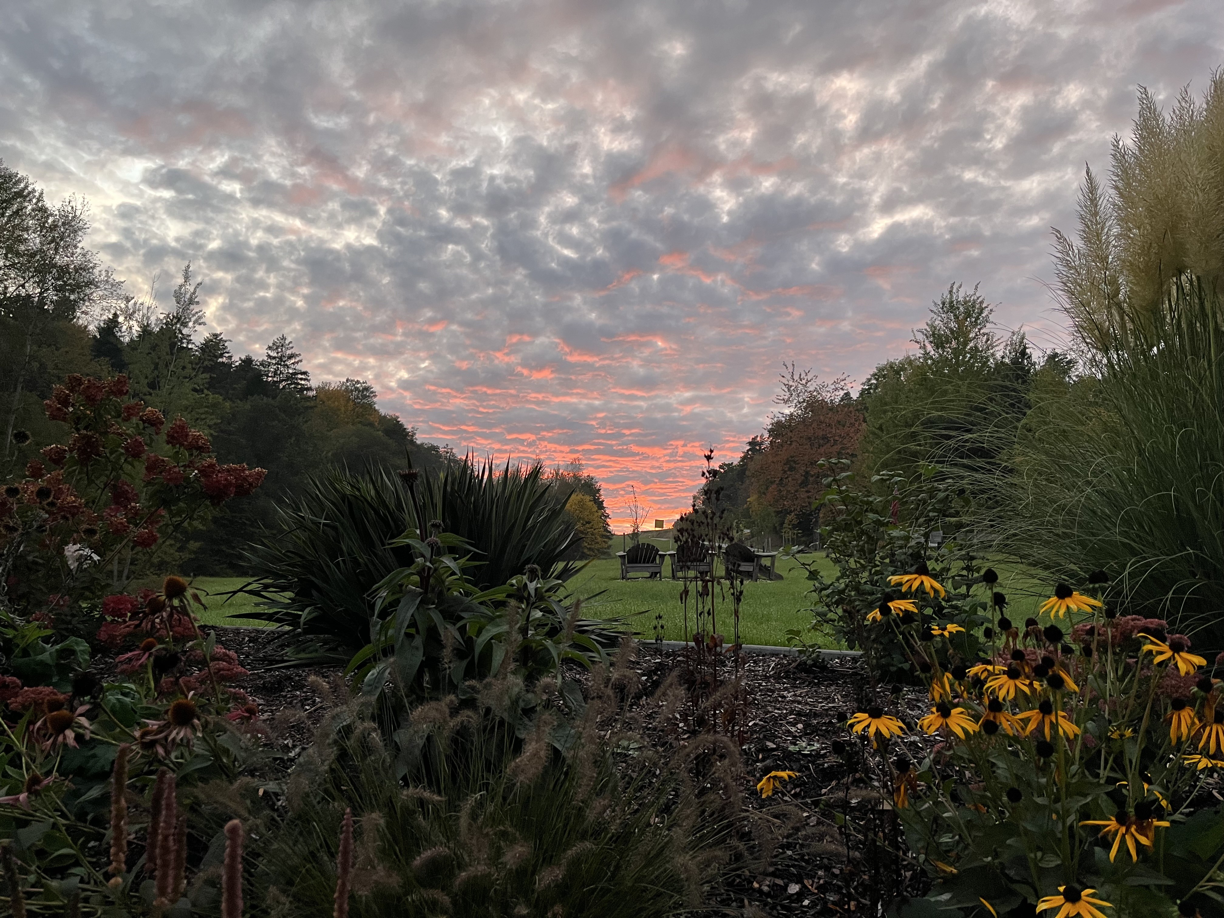 There is not much left to do in the garden at this point EXCEPT for planting bulbs for the spring. I just got a delivery of over 350 bulbs and am waiting for (at least) a dry-ish day to plant them. I won’t be posting photographs of that, though; what could be less interesting than looking at holes dug and stuffed! But, if all goes well, we should have a wonderful early to mid Spring, which I definitely will post! Until then, it is nice just to sit back and watch how Nature slows down and gets ready for the winter slumber. If autumn brings with it such beautiful sunsets, bring it on! (I still can’t get over how much the sky looks like what the ocean must look like from underneath – glorious!)