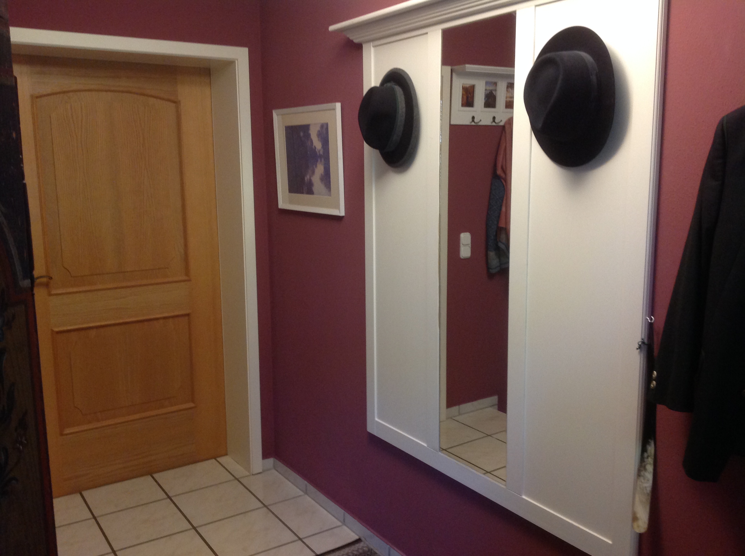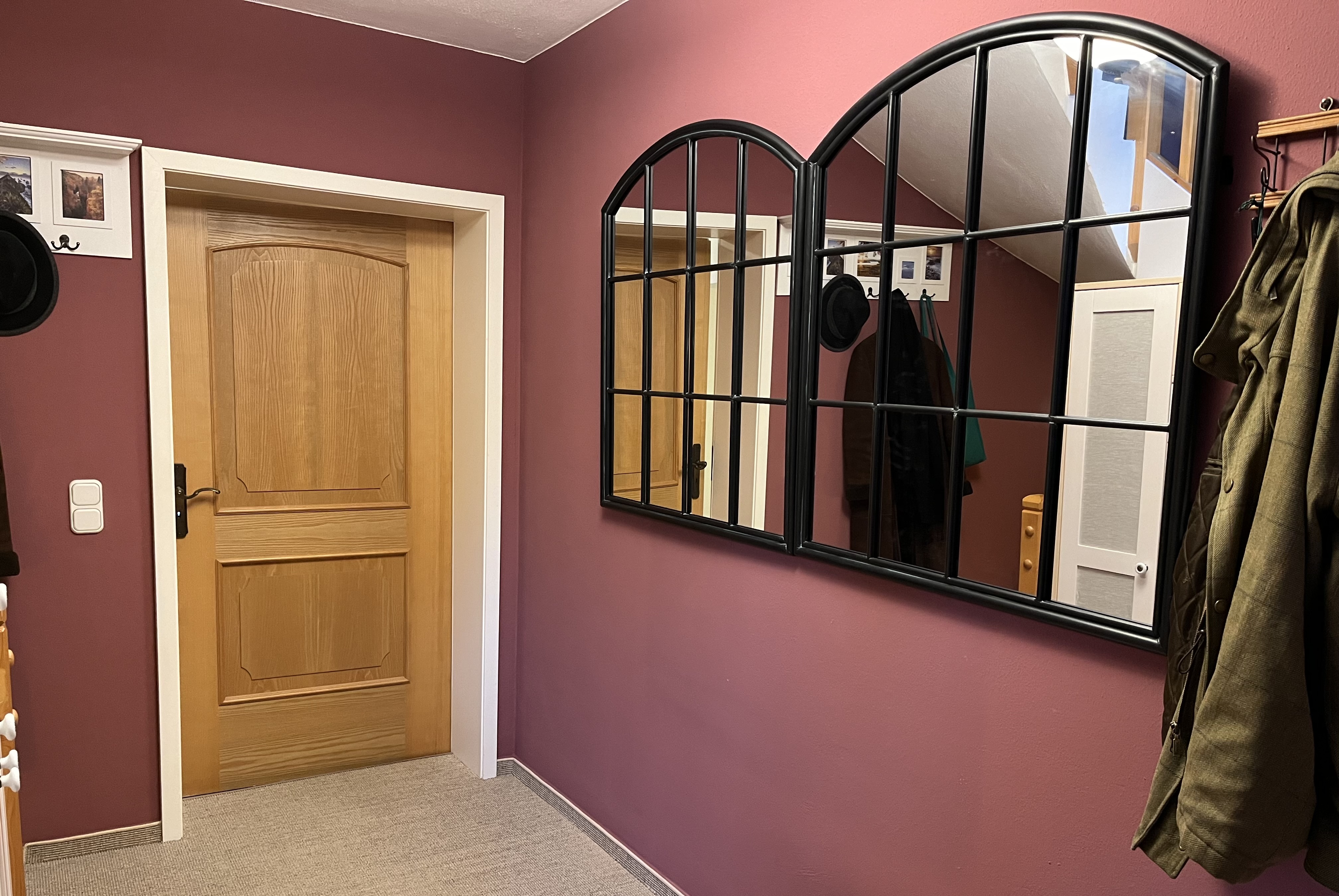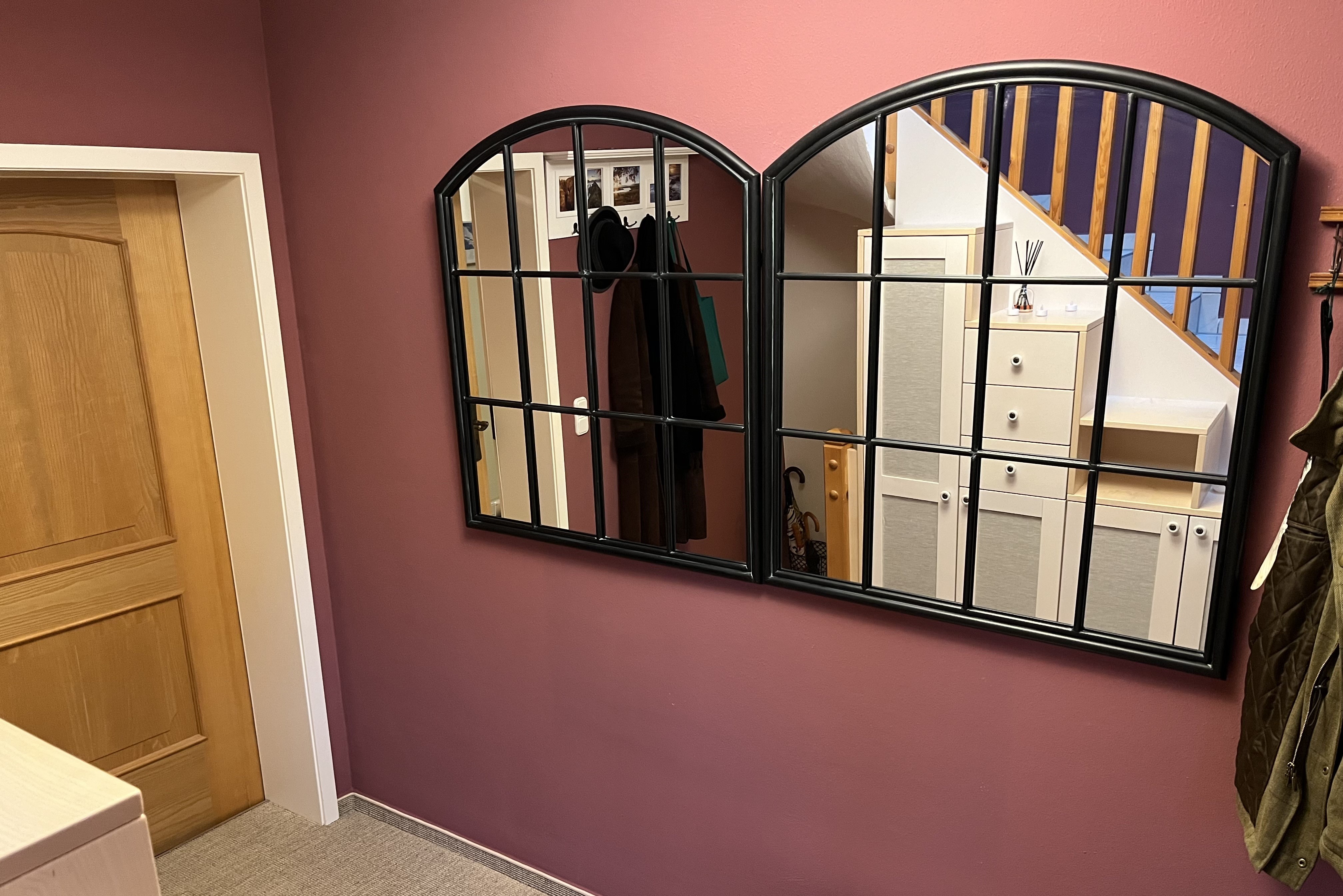And, finally I found the right mirrors for our entrance hall! That room was always so dark. OK, I did paint it a dark color. But, even when it was painted a light yellow, the room was still dark. I thought, if we added more mirrors, they would reflect what light there was coming in through the small window next to the front door and from the skylight in the roof above.