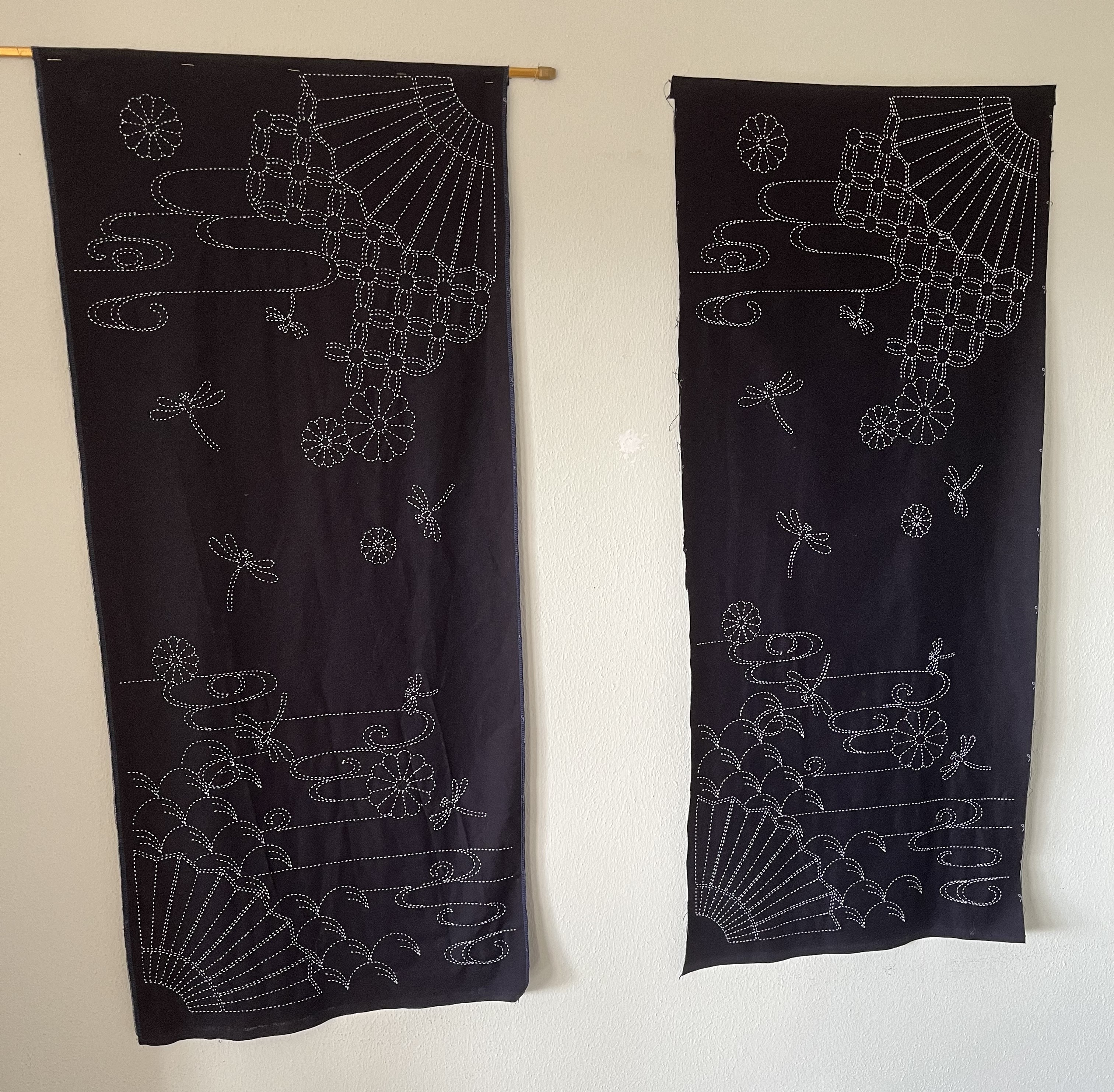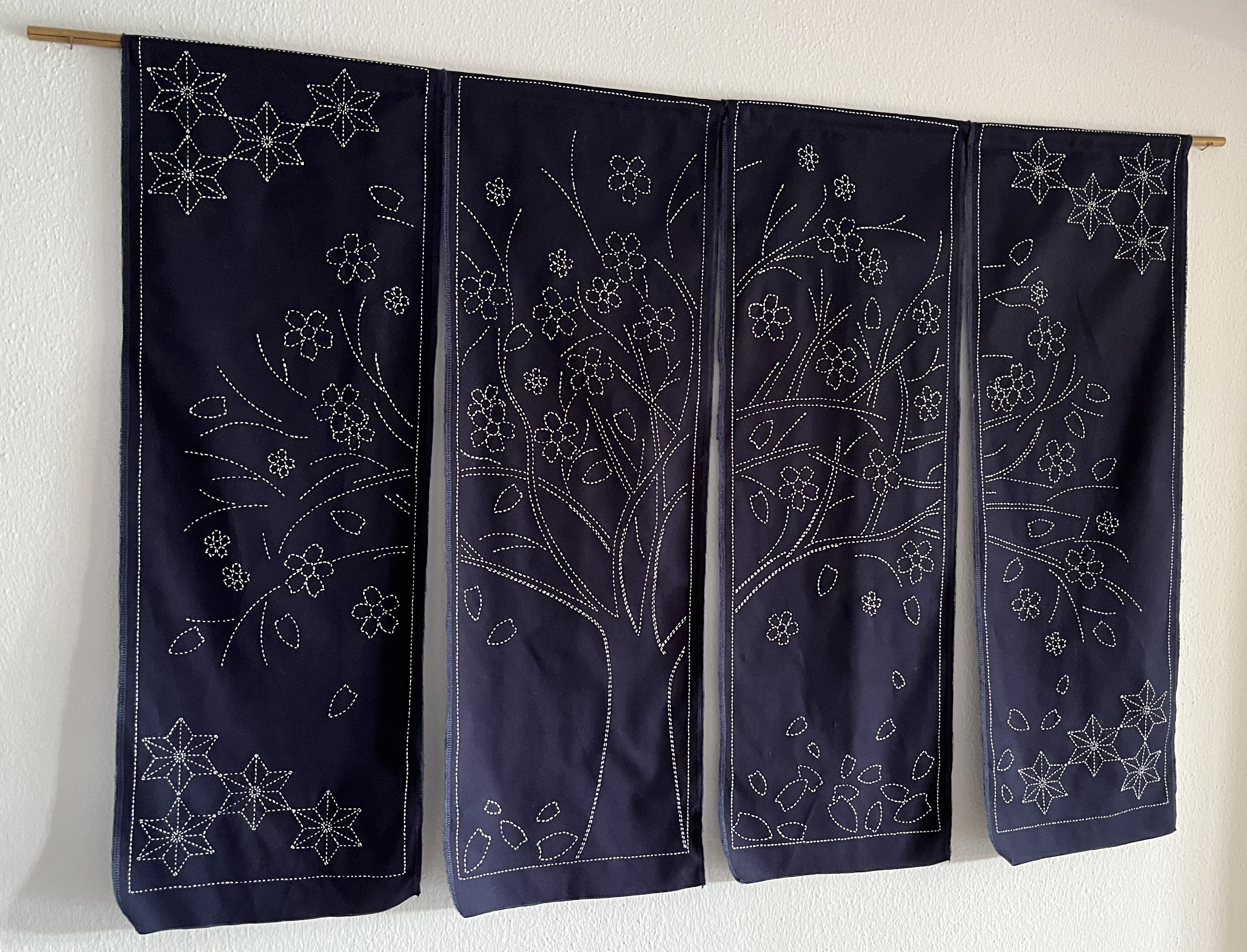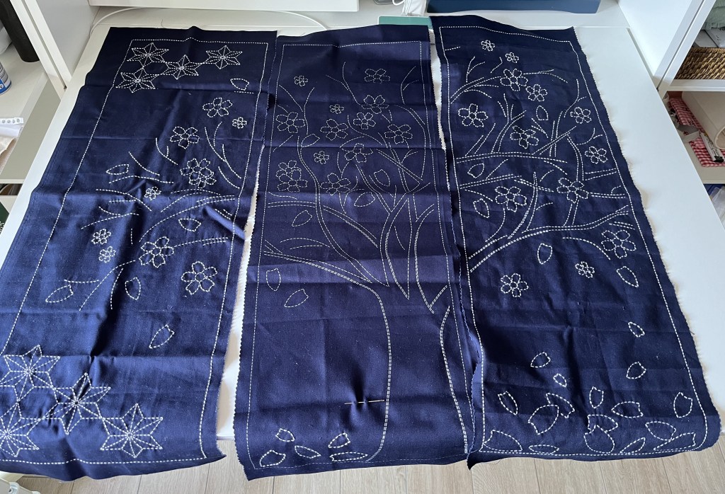 So, I bought a punch of pre-printed sashiko panels which have roughly the size of noren curtains.