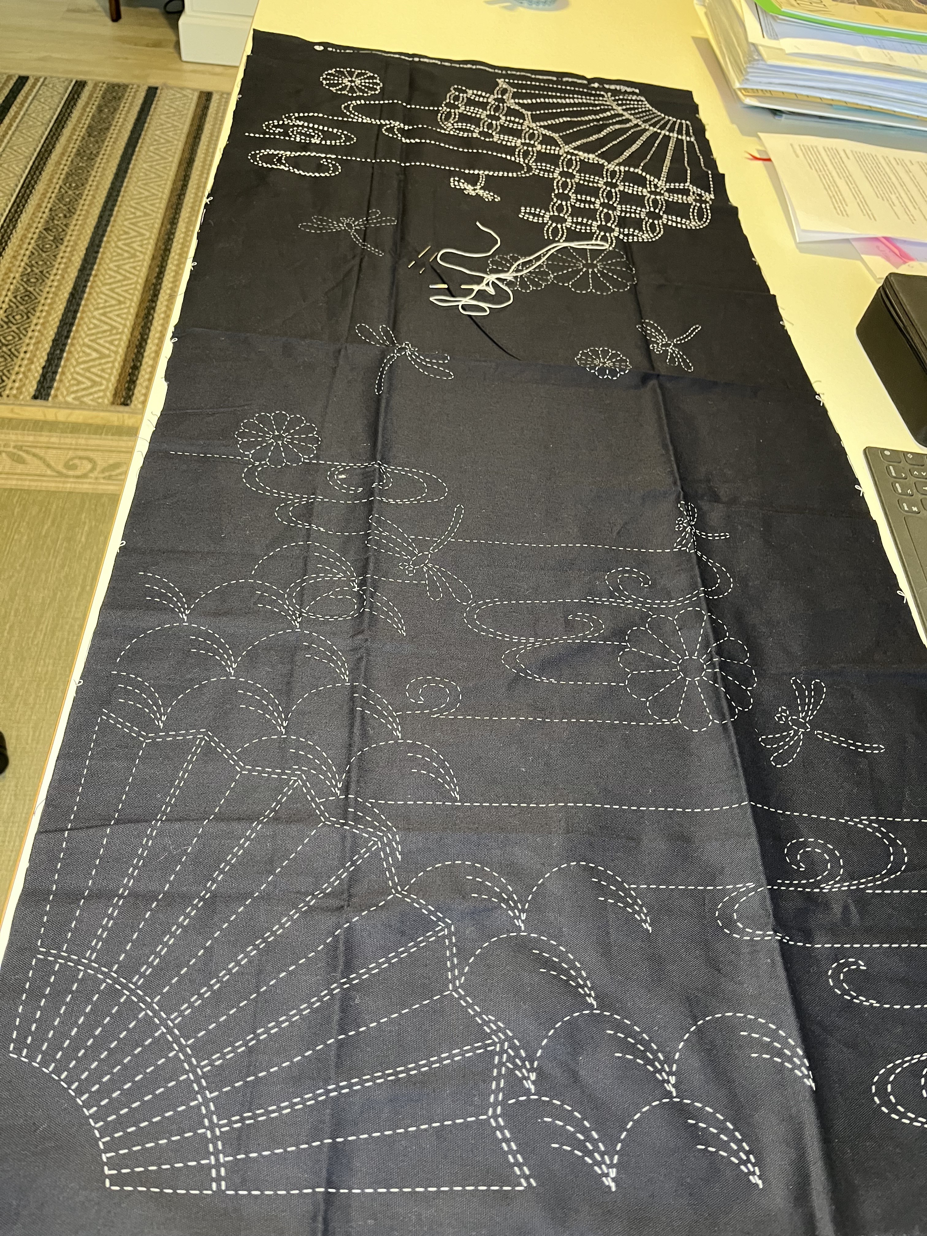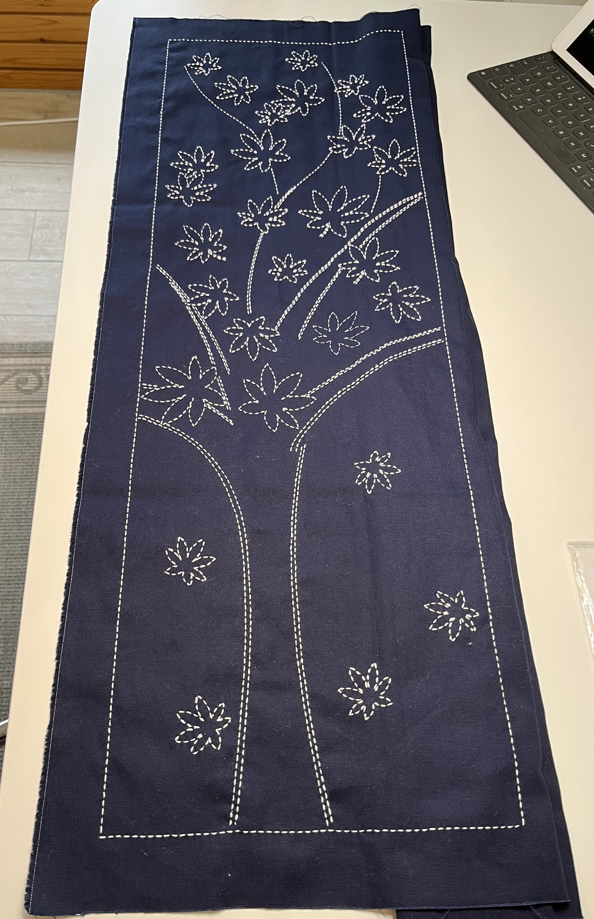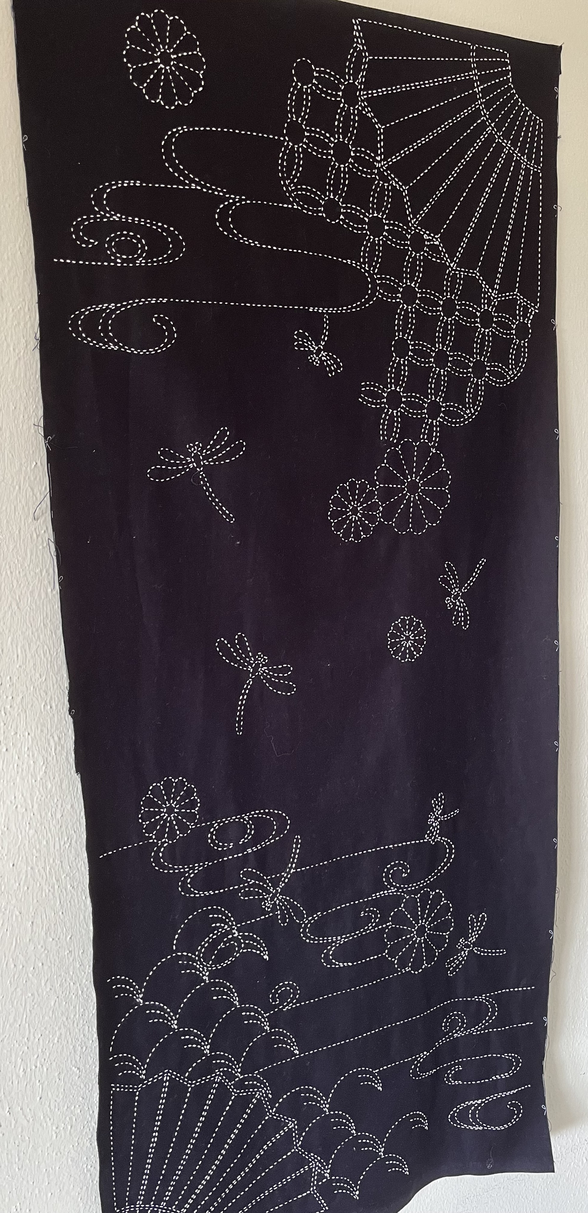 So, I bought a punch of pre-printed sashiko panels which have roughly the size of noren curtains.