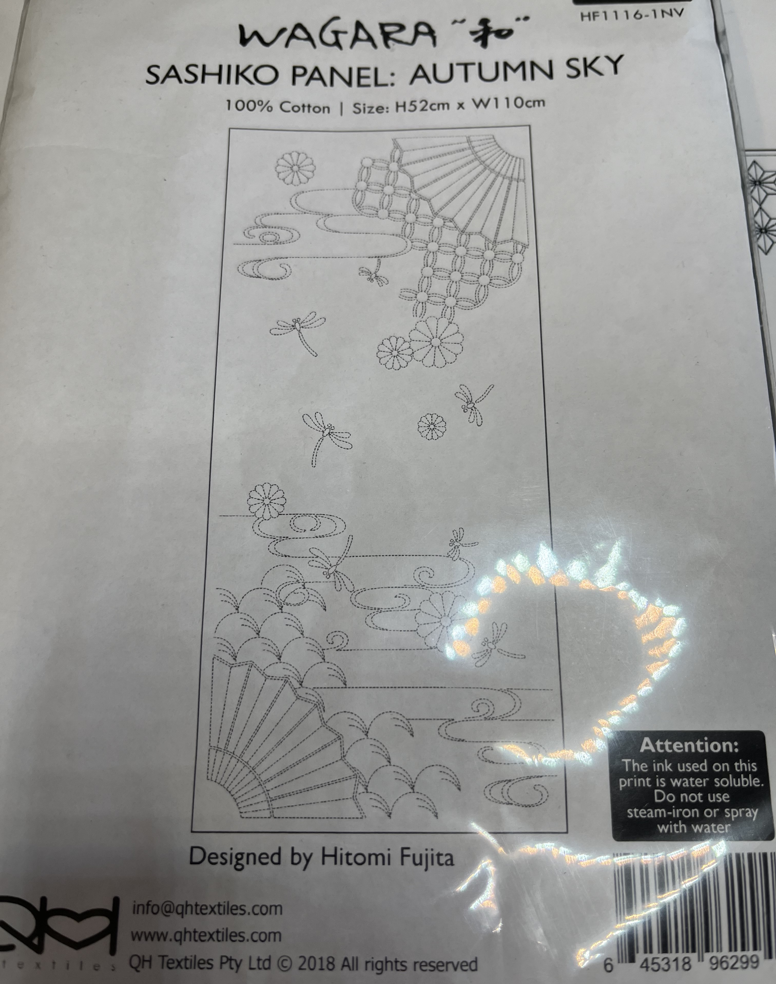 February 9, 2024: After finishing the pillow, I started on one of the Sashiko panels, the Autumn Sky panel (by Hitomi Fujita for QH Textiles).