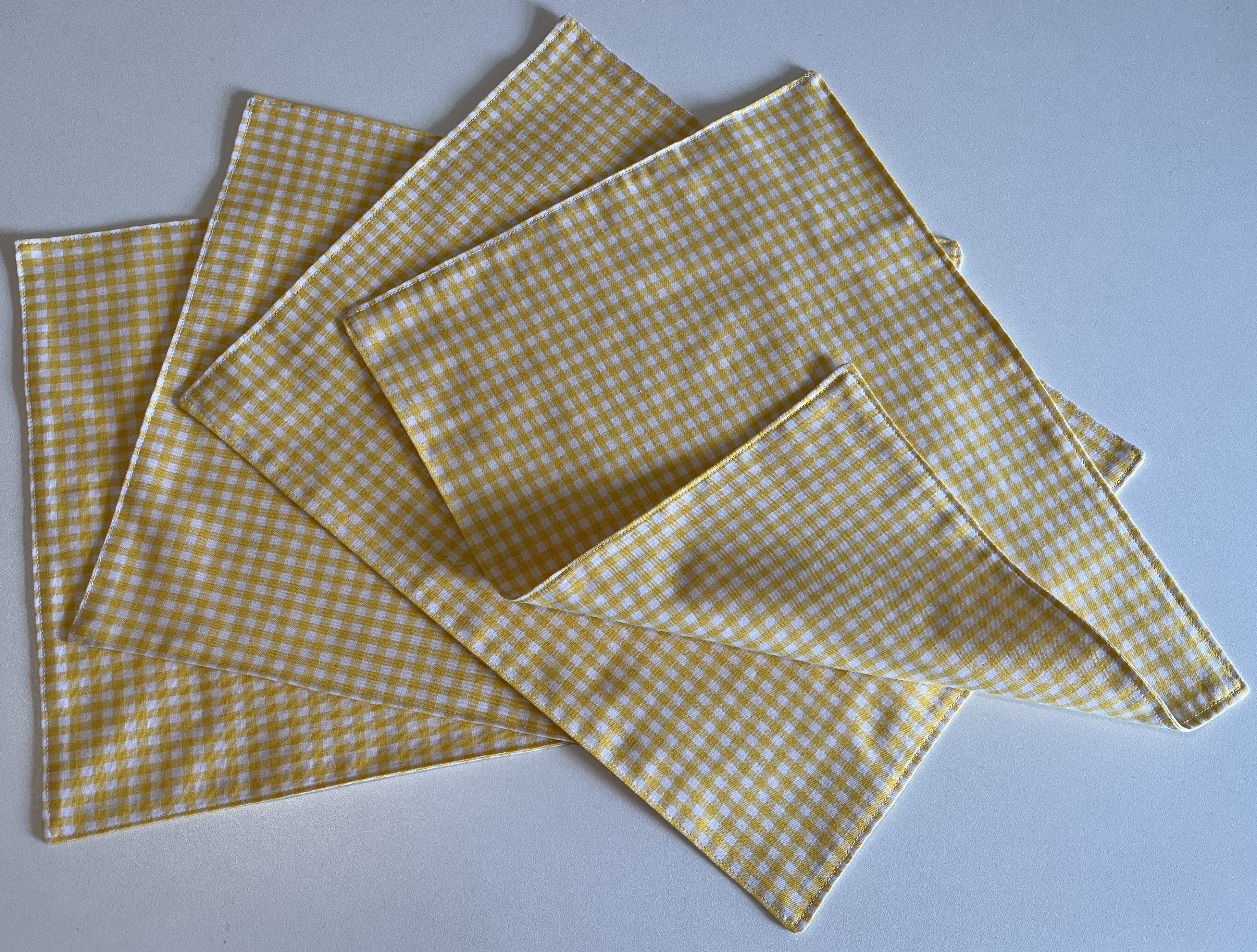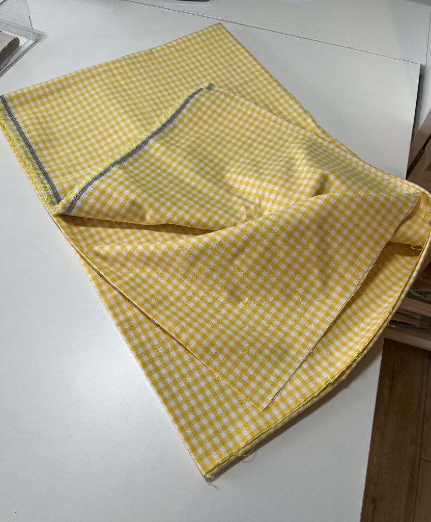 And, lastly, I discovered a bunch of yellow/white gingham fabric left over from some chicken scratch project. It’s enough to make probably 4 placemats.