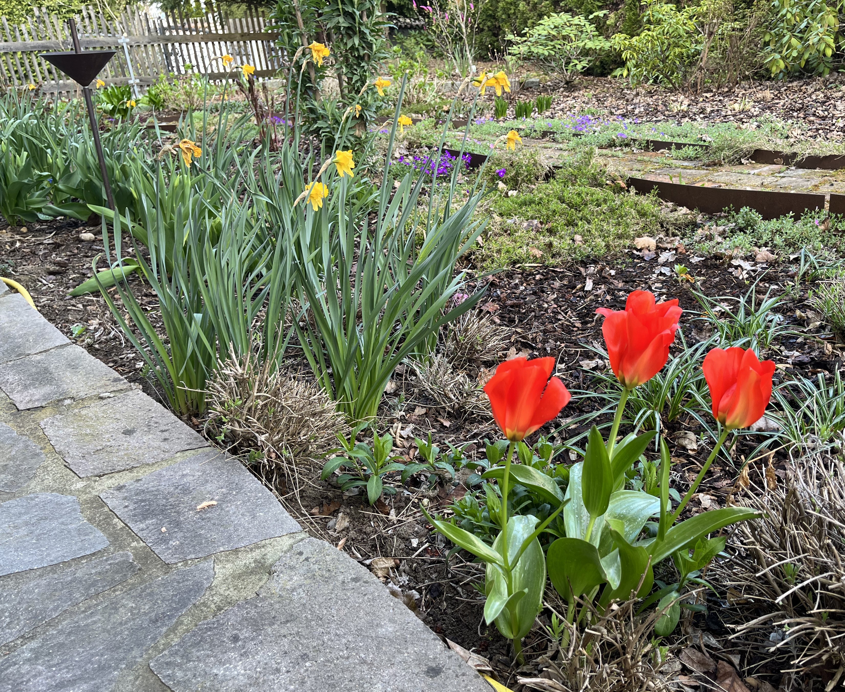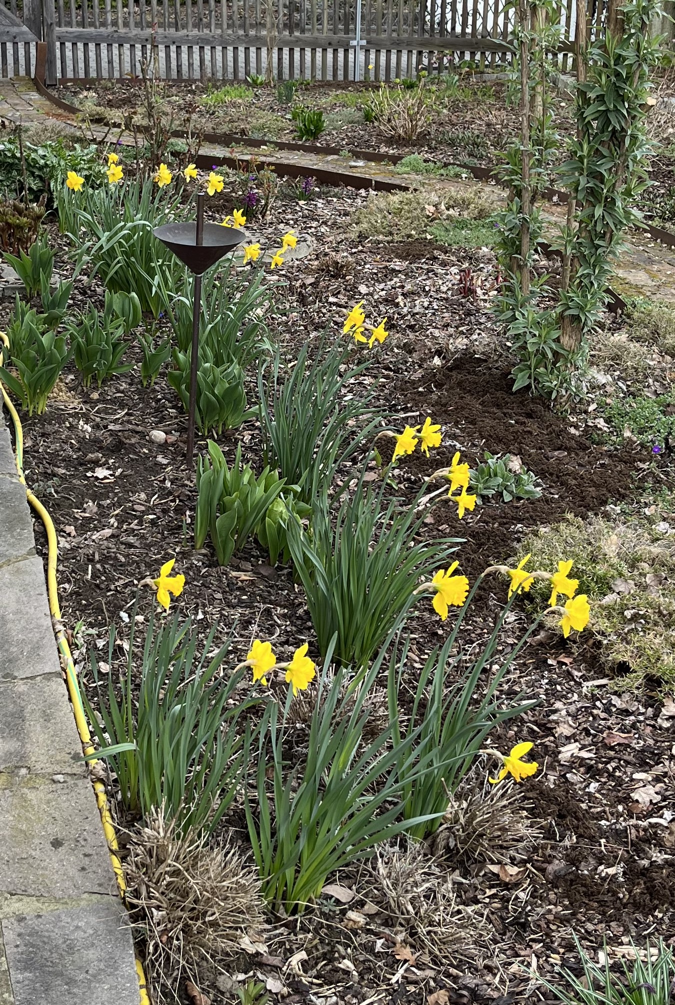 In the meantime, the weather has been getting warmer and, in the garden, things are beginning to pop! We are supposed to get close to 28° C this weekend, which is crazy warm for this time of year. And, I think I am going to take the risk and start planting veggies. But, that is all Zukunftsmusik as we say here (stuff for the future). For now, it is time to check out the status in the garden!