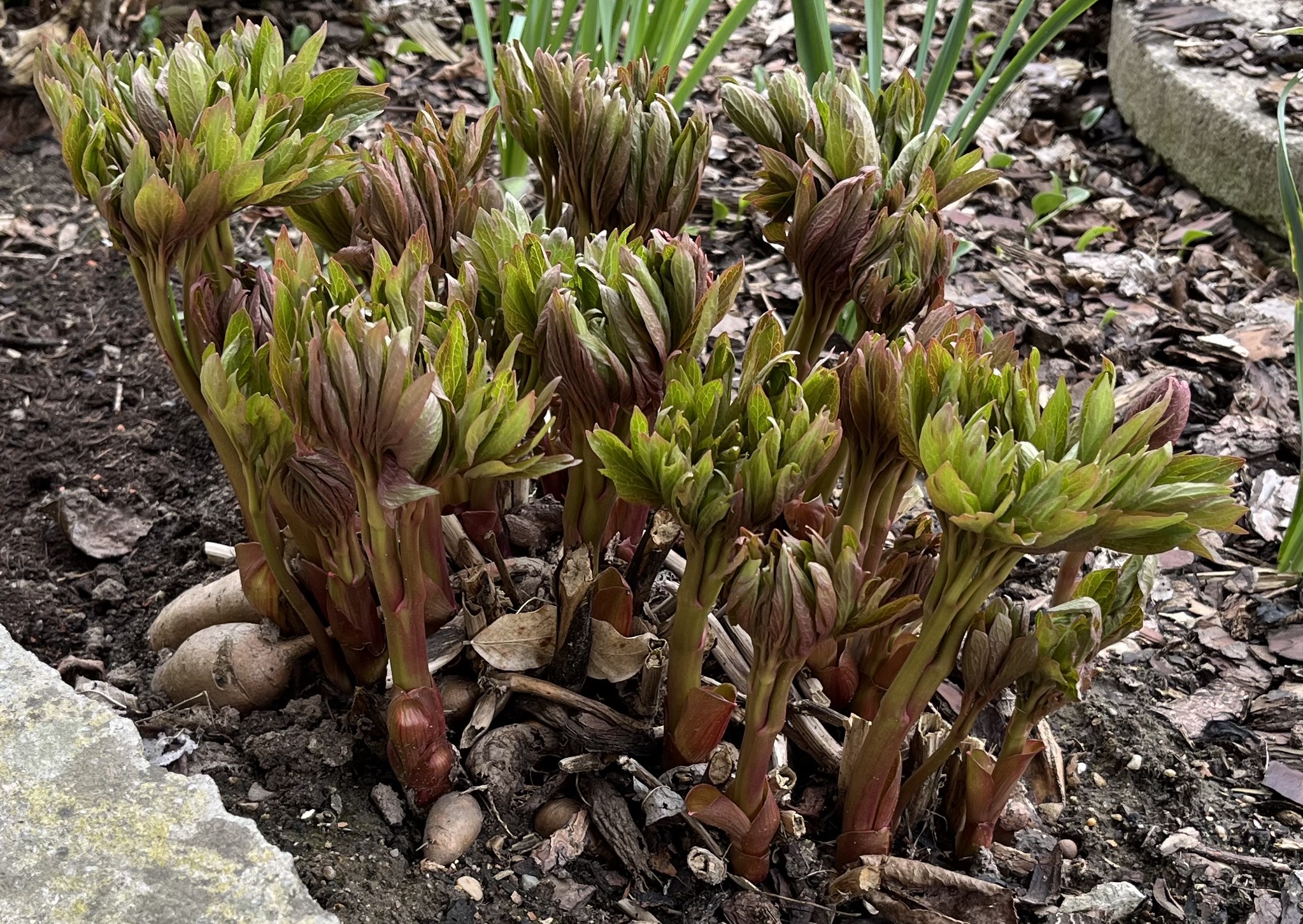 You can pretty much watch the peonies grow! I swear, every day I go outside, they have grown another 5 cm! And, now some of the leaf-buds are opening. It can’t be long now!