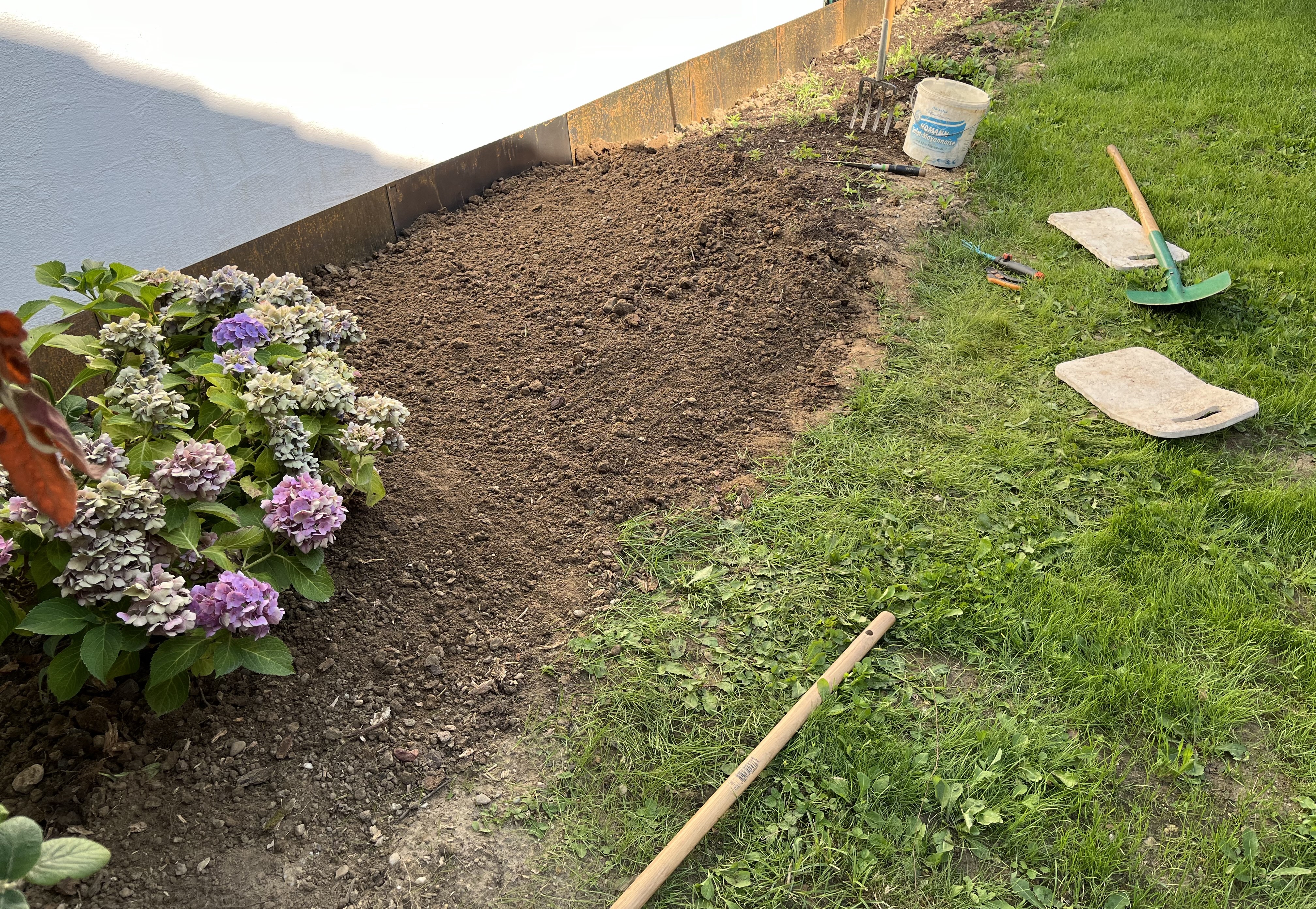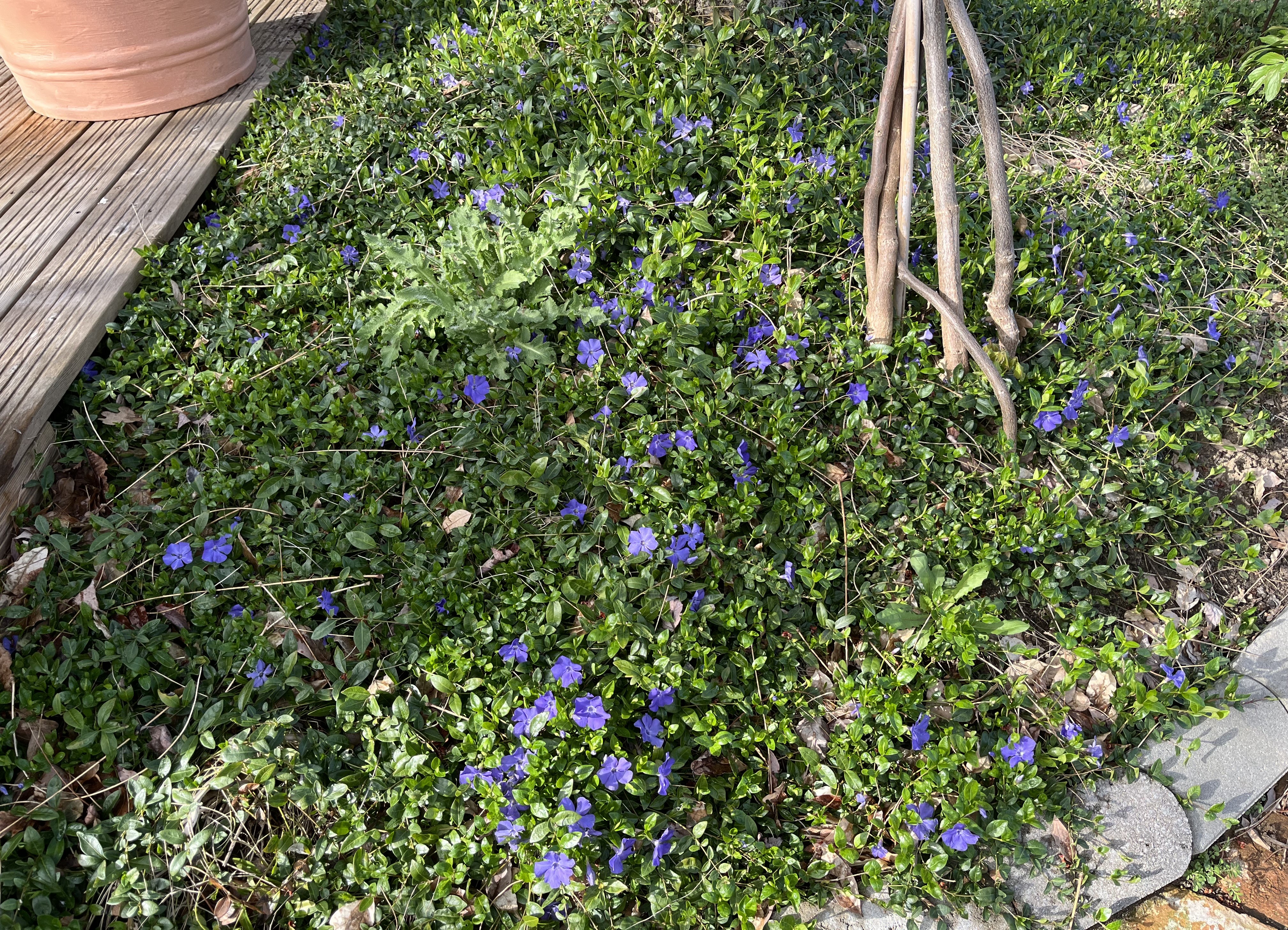 The plants I ordered for the terrace are taking forever to arrive – we gardeners all order at the same time in Spring, which makes it tough for the plant sellers. Although, you’d think they would know to expect a Spring rush and plan accordingly – oh well. So, anyway, the plantings for the terrace are taking longer than I hoped but some progress has been made. Here’s a few pictures of what has been planted so far. I’ll follow up with more pictures once the plants arrive.