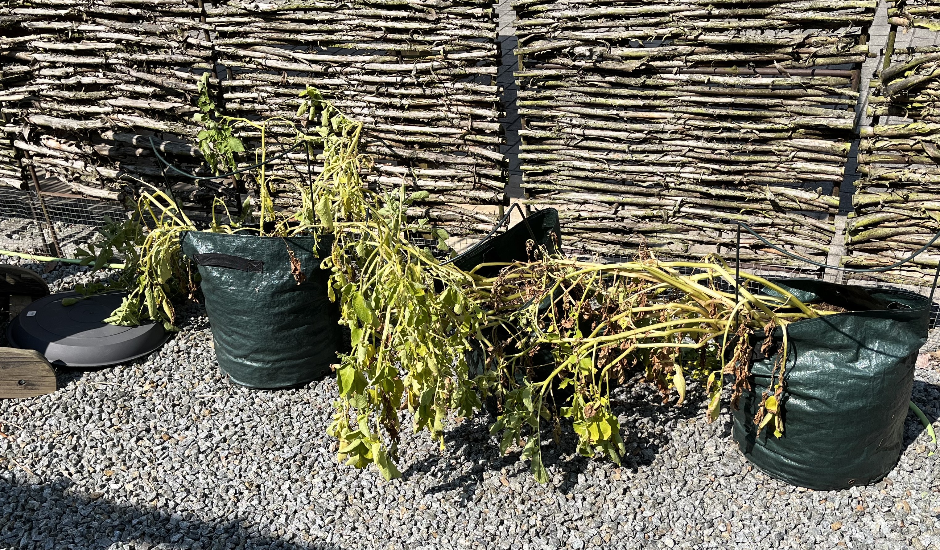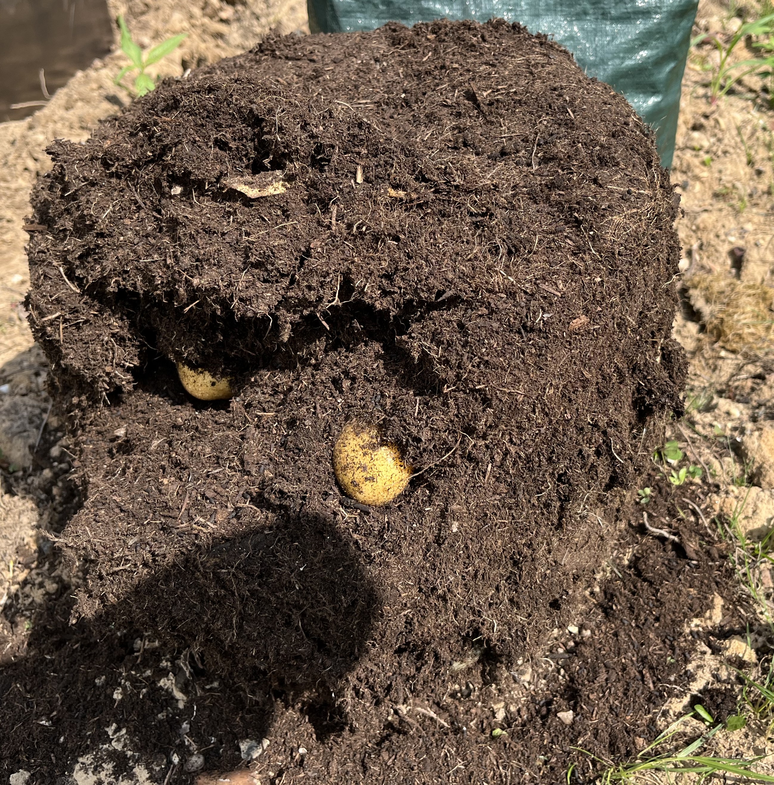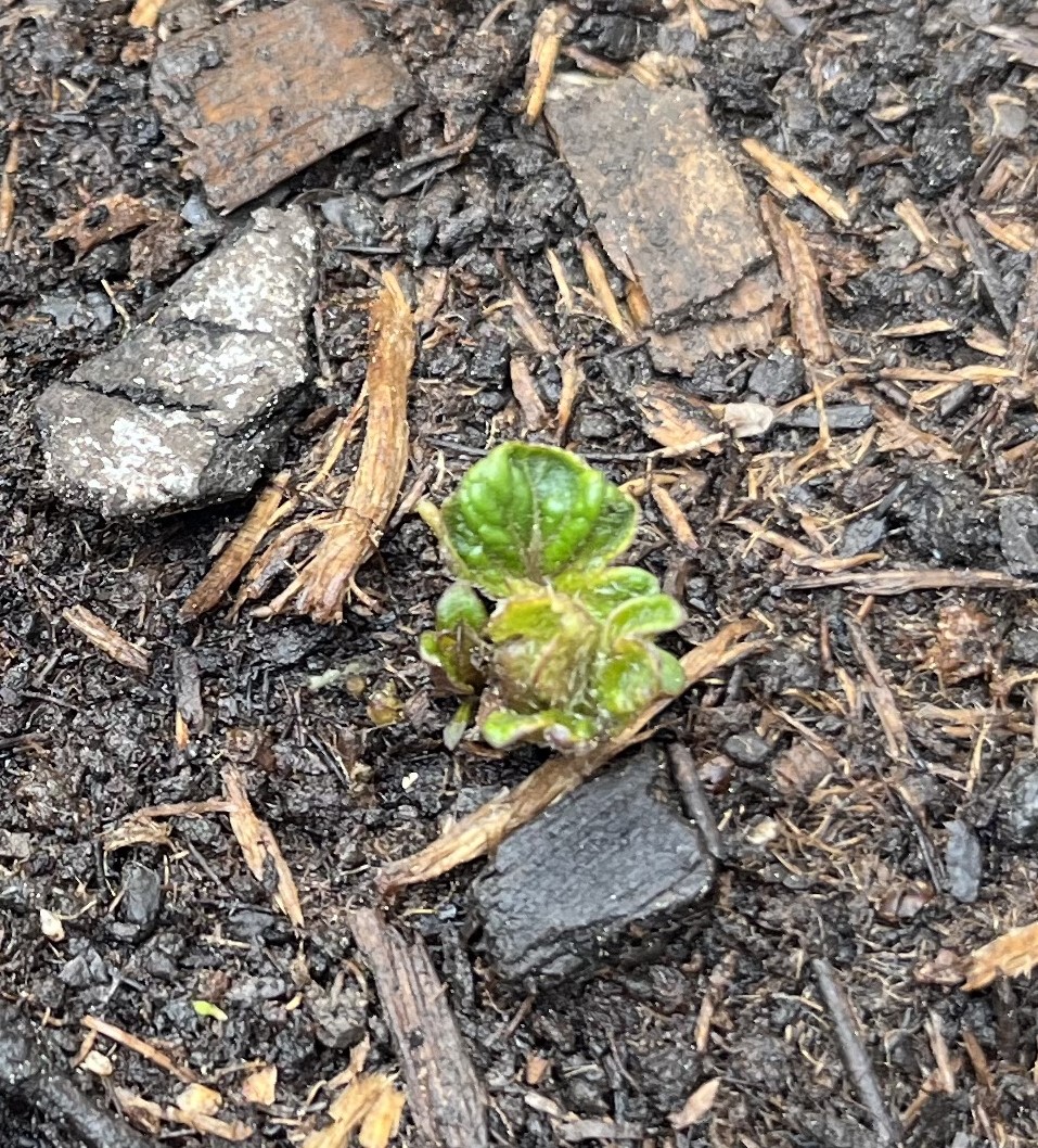The potatoes are coming along. I wasn’t sure if they’d survive the overnight frosts. Being planted in a sack doesn’t provide much protection from freezing temps but they survived and have started to sprout! I have already covered them over with additional soil … twice!