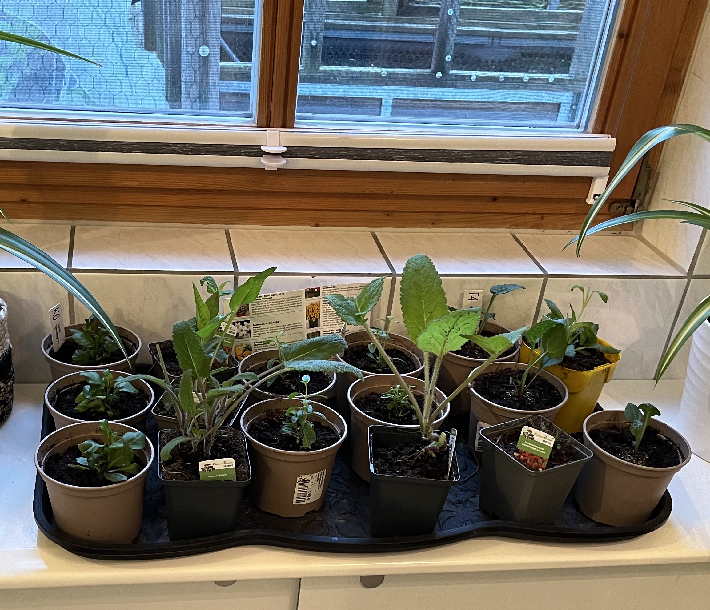 So, this year, instead of risking it with veggie plants, I decided to plant early spring plants in flower boxes and put them in front of the windows in the livingroom. This turned out to be such a nice idea, I wonder why it never occured to me before this year!