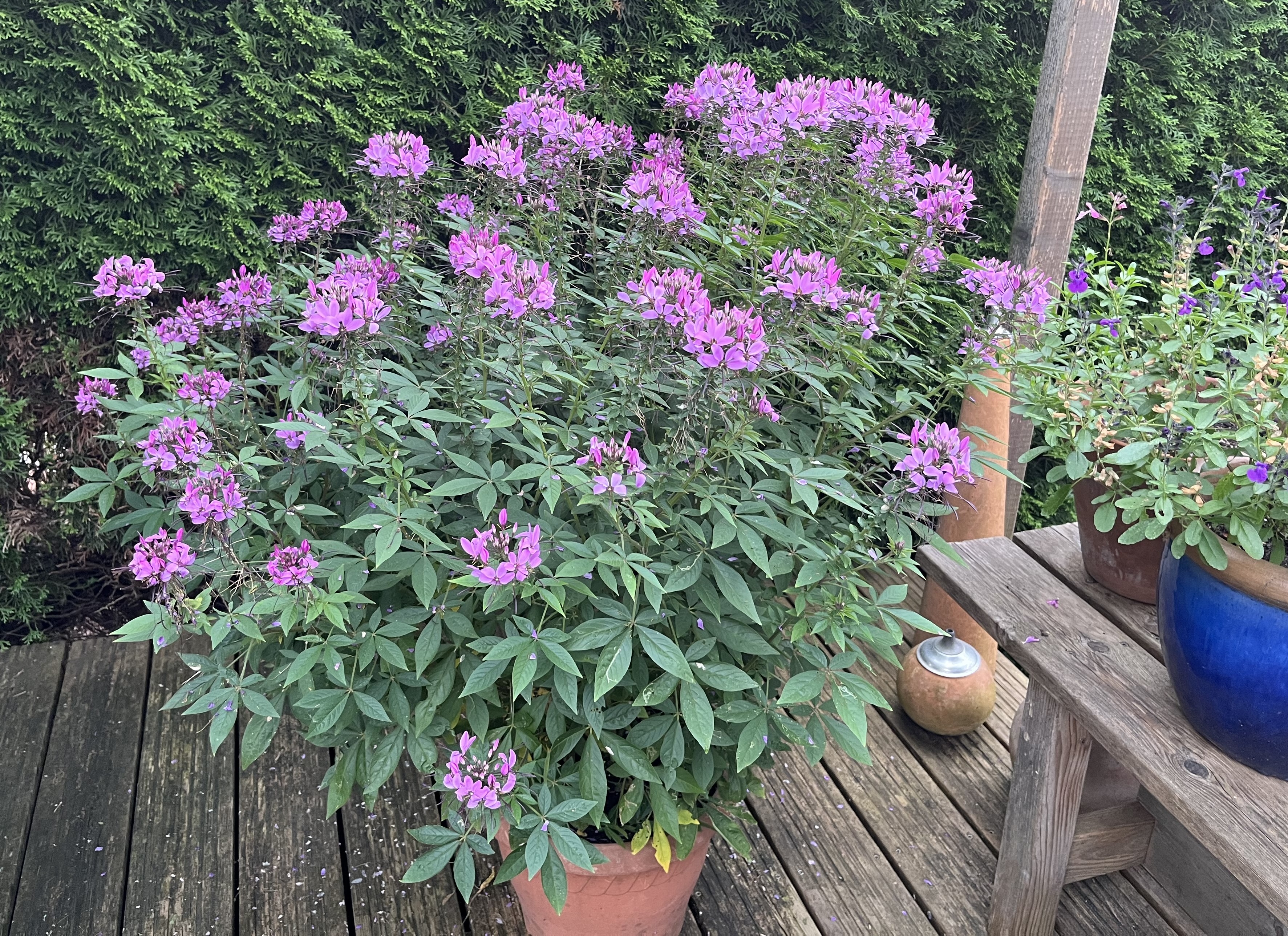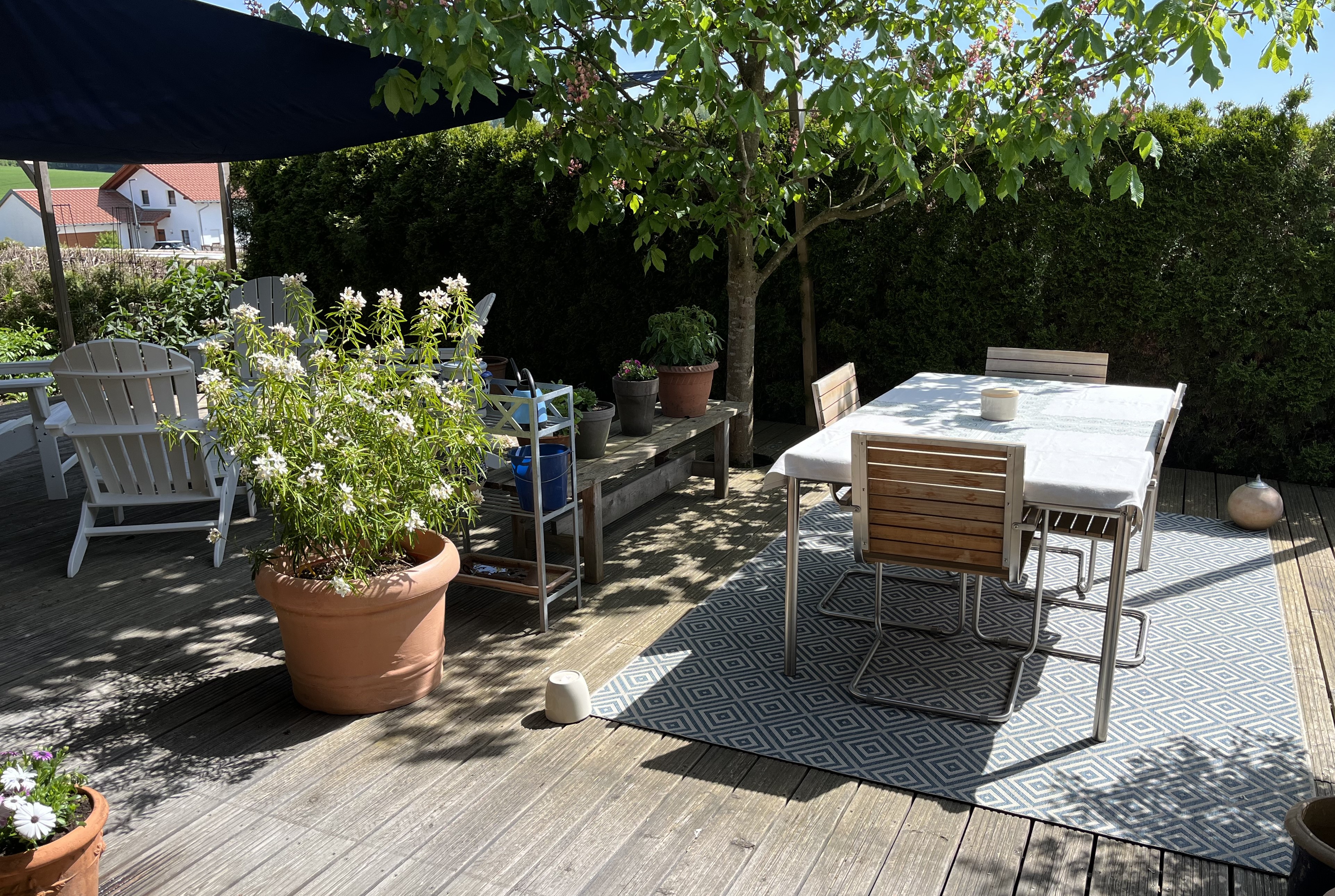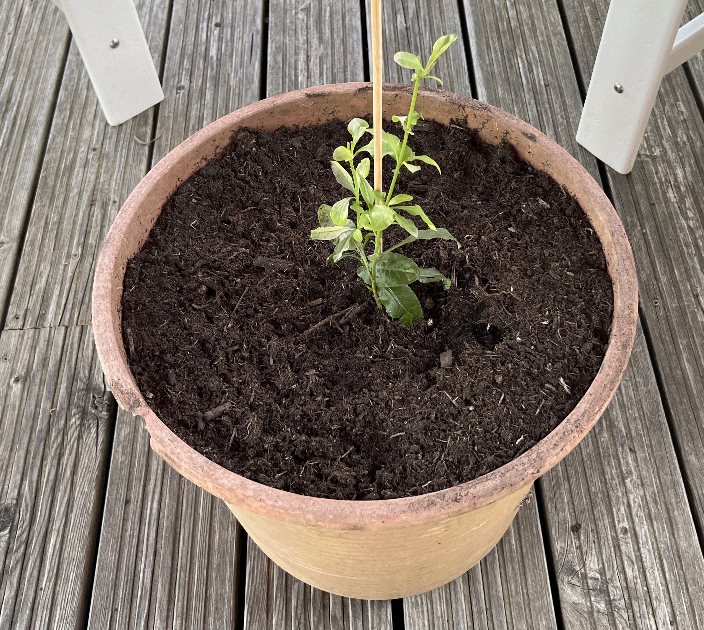 Along with the flowering plants on the terrace, there are now two pots with hokkaido pumpkin plants. Unfortunately, the first two plants did not survive the frost and I had to replace them. Soon the new plants should start to sprout and grow and I will wind the plants around the plant pyramid. Again, thanks to a youtube video, I am a little smarter now about how to keep hokkaido plants from overtaking a space. We’ll see how I do this year.