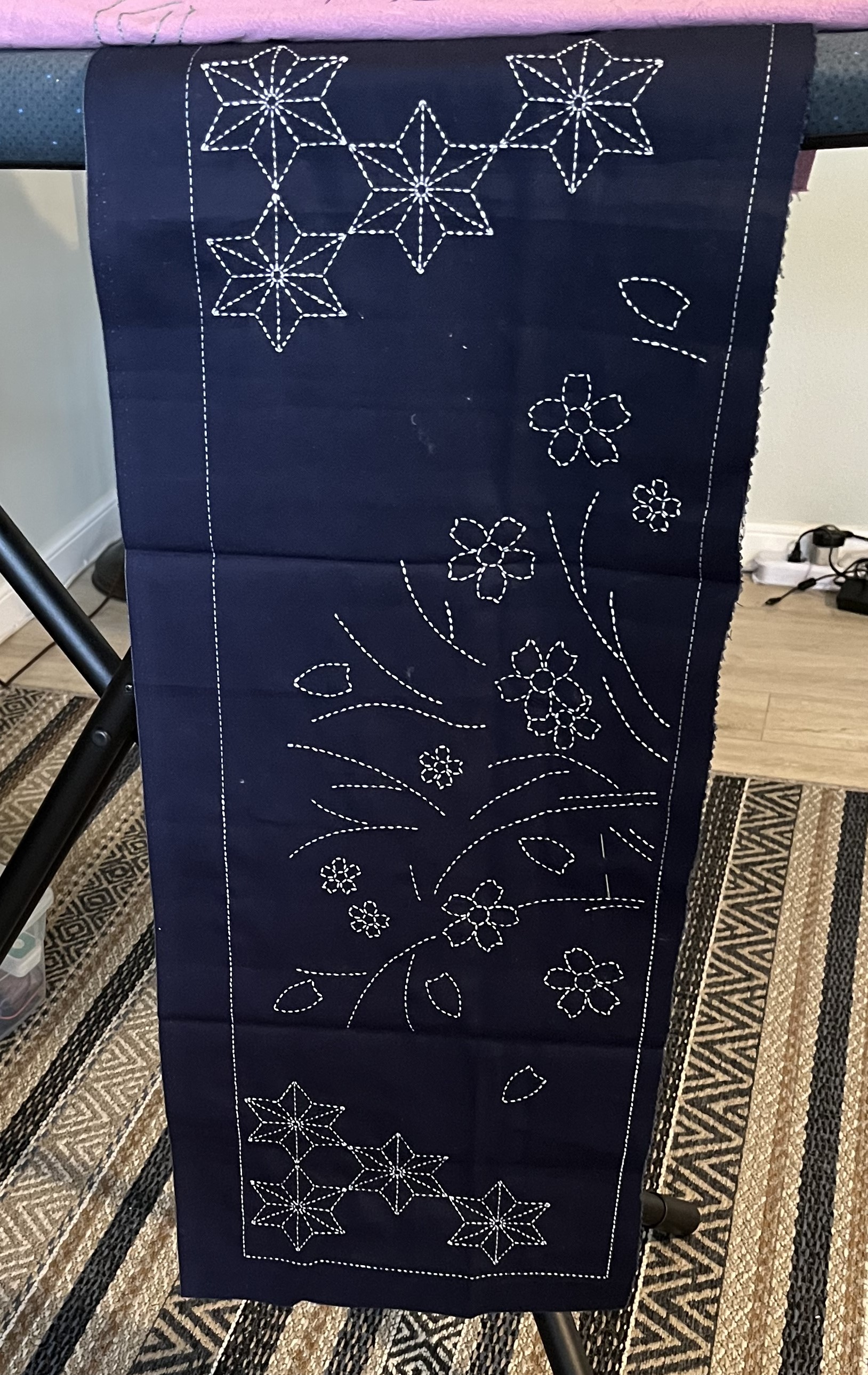 By the way, thanks for your feedback on how best to frame the sashiko panels – good ideas! It’ll be a while before I get to that because I’ve started a new free embroidery project: a table runner. Stay tuned!