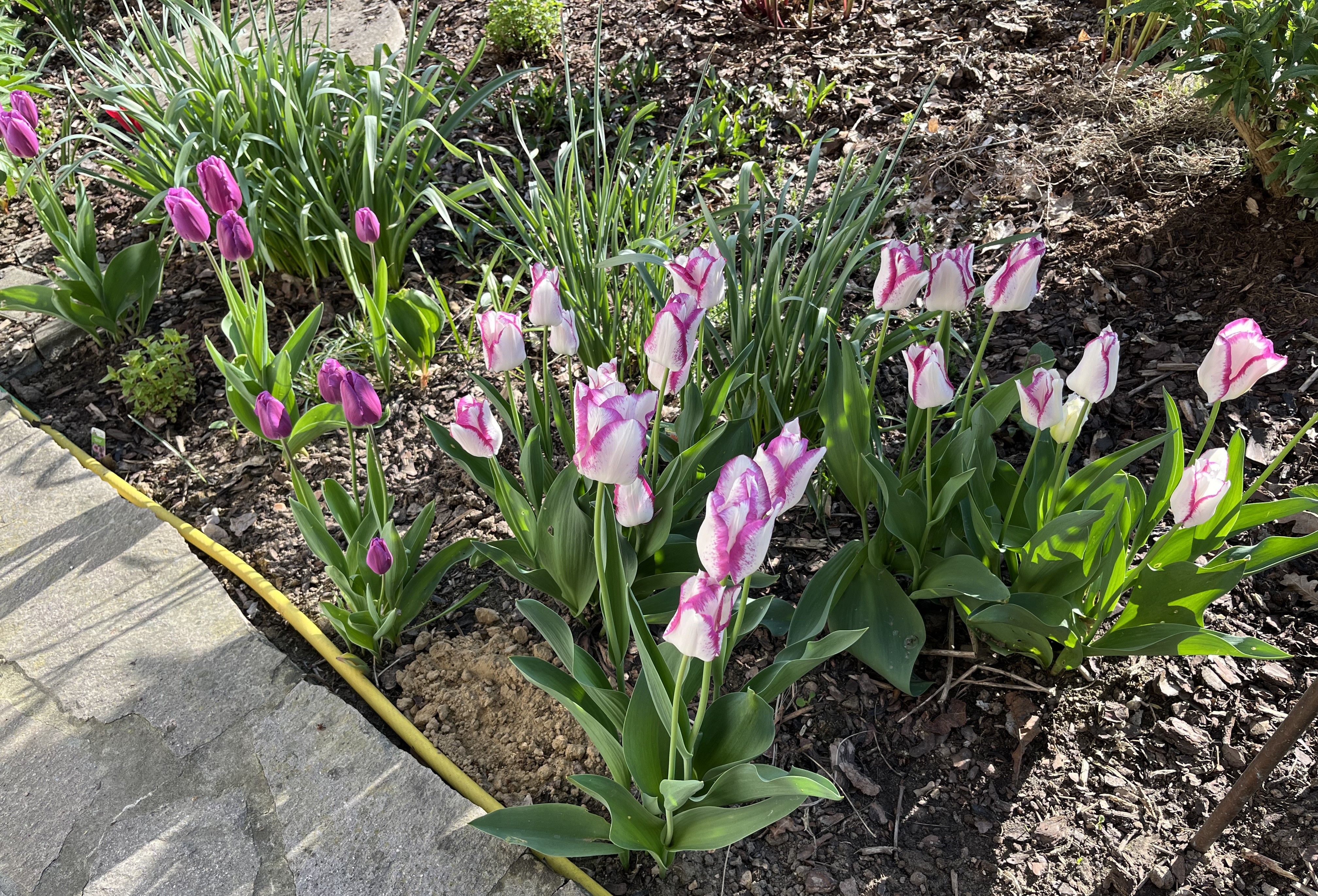 So, as I wrote to one of my sisters recently, I have been doing the Gardener’s Dance: running outside in the evening, just before the sun sets, to cover any and all plants sensitive to frost just so I can run outside the next morning and uncover everything. In and of itself, this is not really difficult work. But, the rain and wind make it extremely unpleasant. I cover the plants with a kind of fleece. This gets soaked by the rain and when I go to arrange it, the wind usually blows the stuff right into me and my face. Blech! This weather system will stay with us for another 5 to 6 days and then we should return to more “normal” April weather: neither too hot nor too cold and with the usual fickle mixture of sun, clouds, showers, and rain. In the US, there is a saying: April showers bring May flowers. Let’s hope that holds up for this year, too!