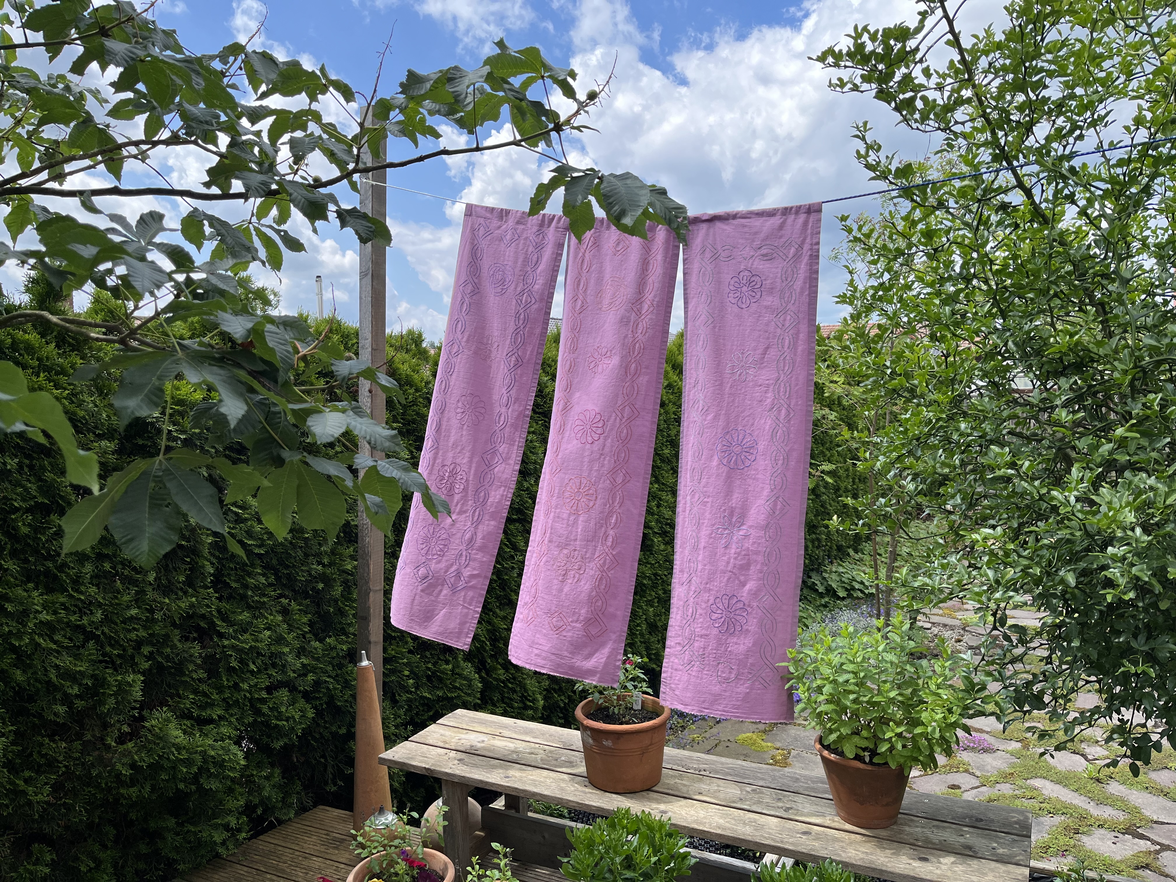 The idea is, once they are stitched, to hang them outside in the summer as a kind of privacy screen, just something to separate the outside from the inside without having to close the door.