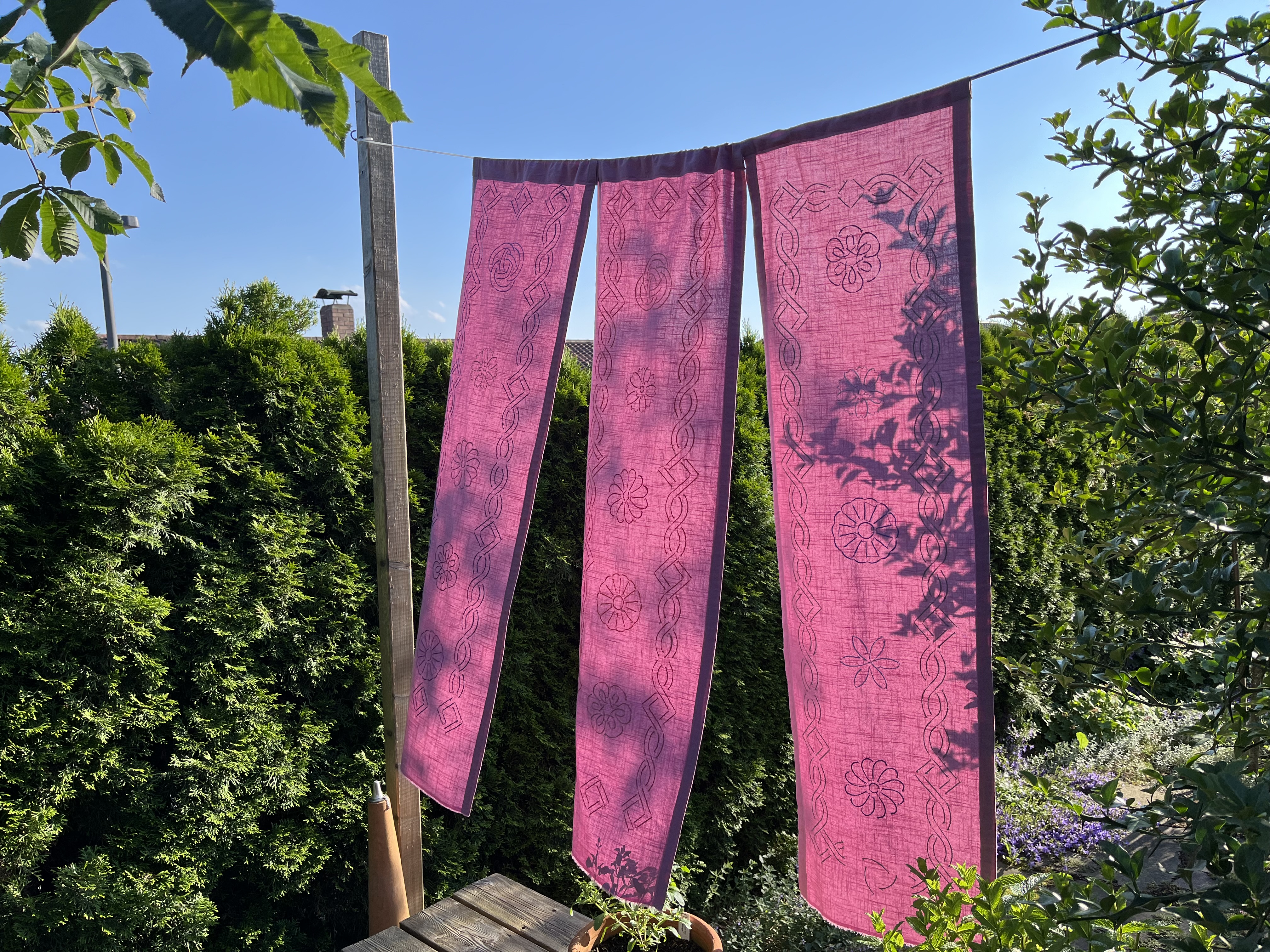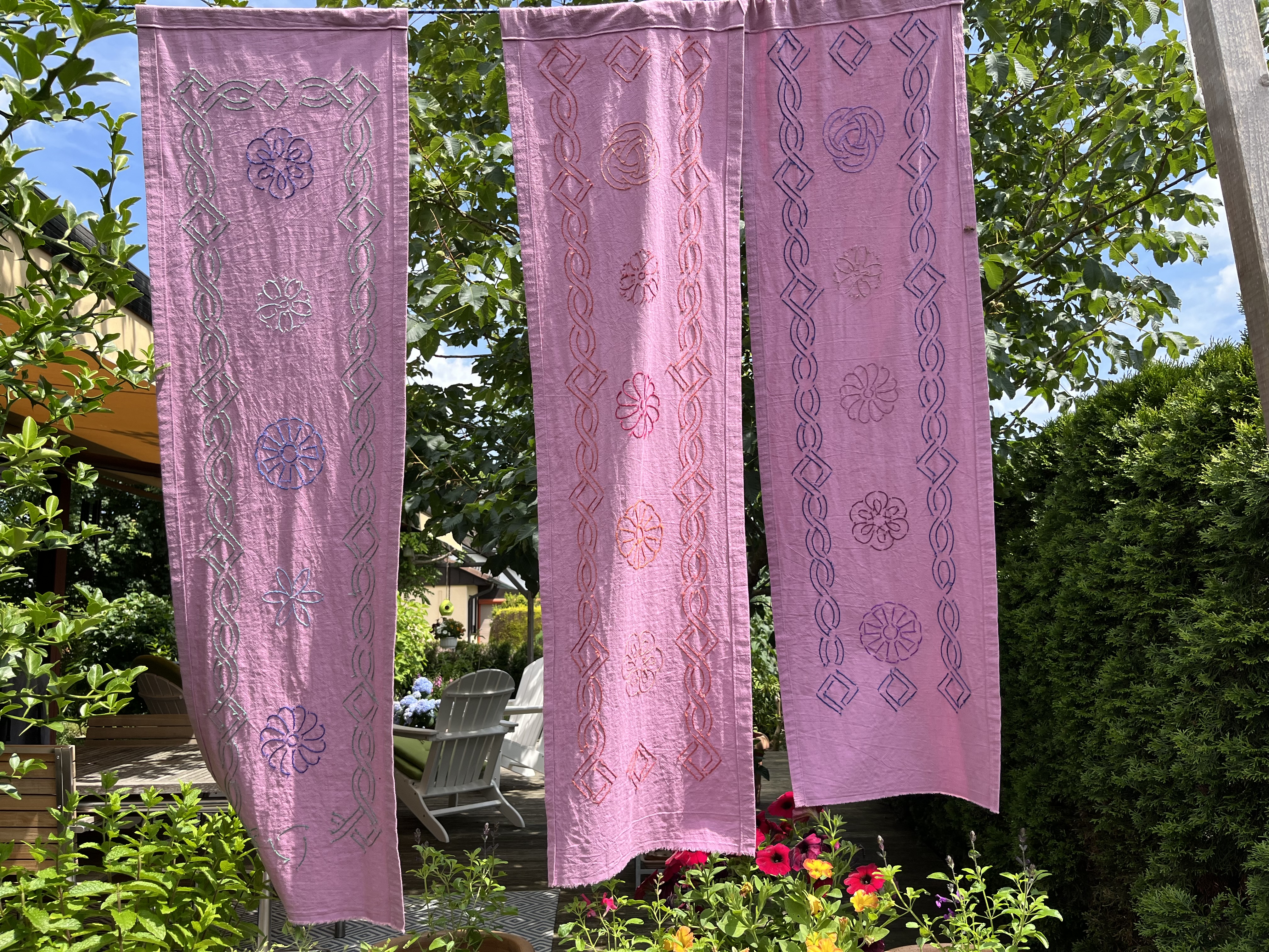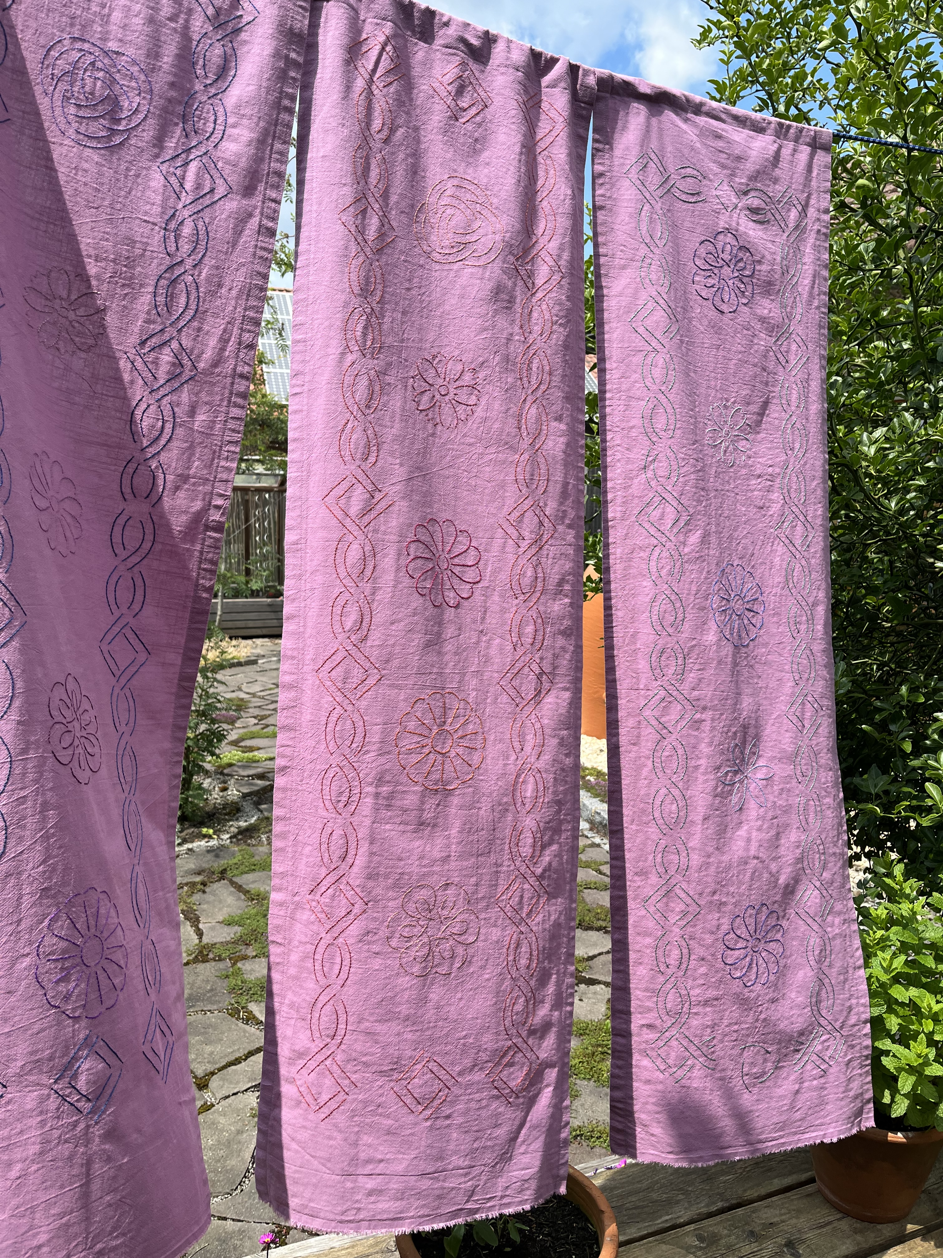There are several sashiko projects I want to start. They use pre-printed designs, so no super creativity there. Still, I have this idea which I want to try out: outside curtains.
