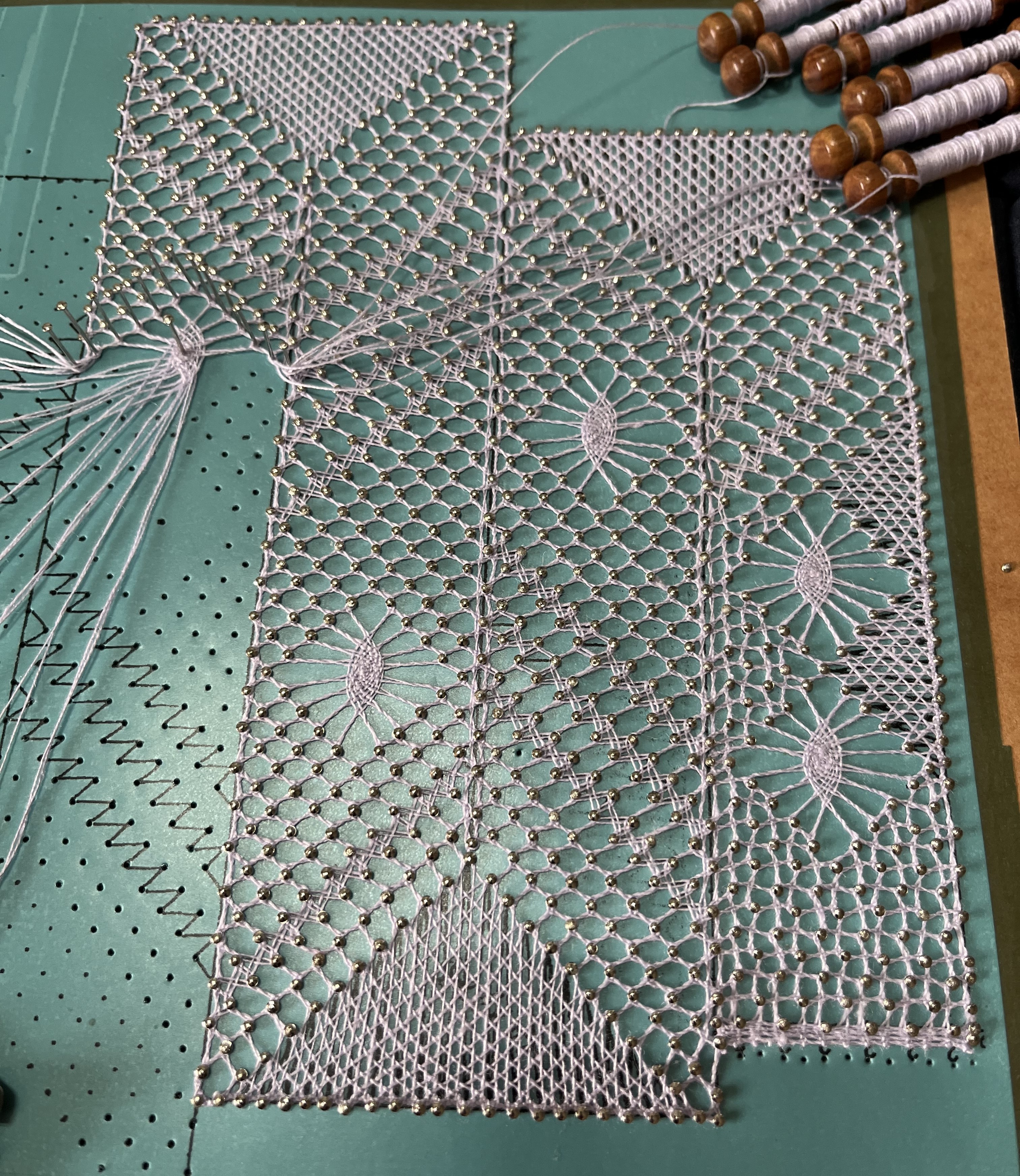 I continue getting back into bobbin lace-making and just started something for Christmas (!!!). I know – already talking about Christmas?? But, lace-making projects take a long time, especially when you have to undo and redo your work because you are so out of practice!