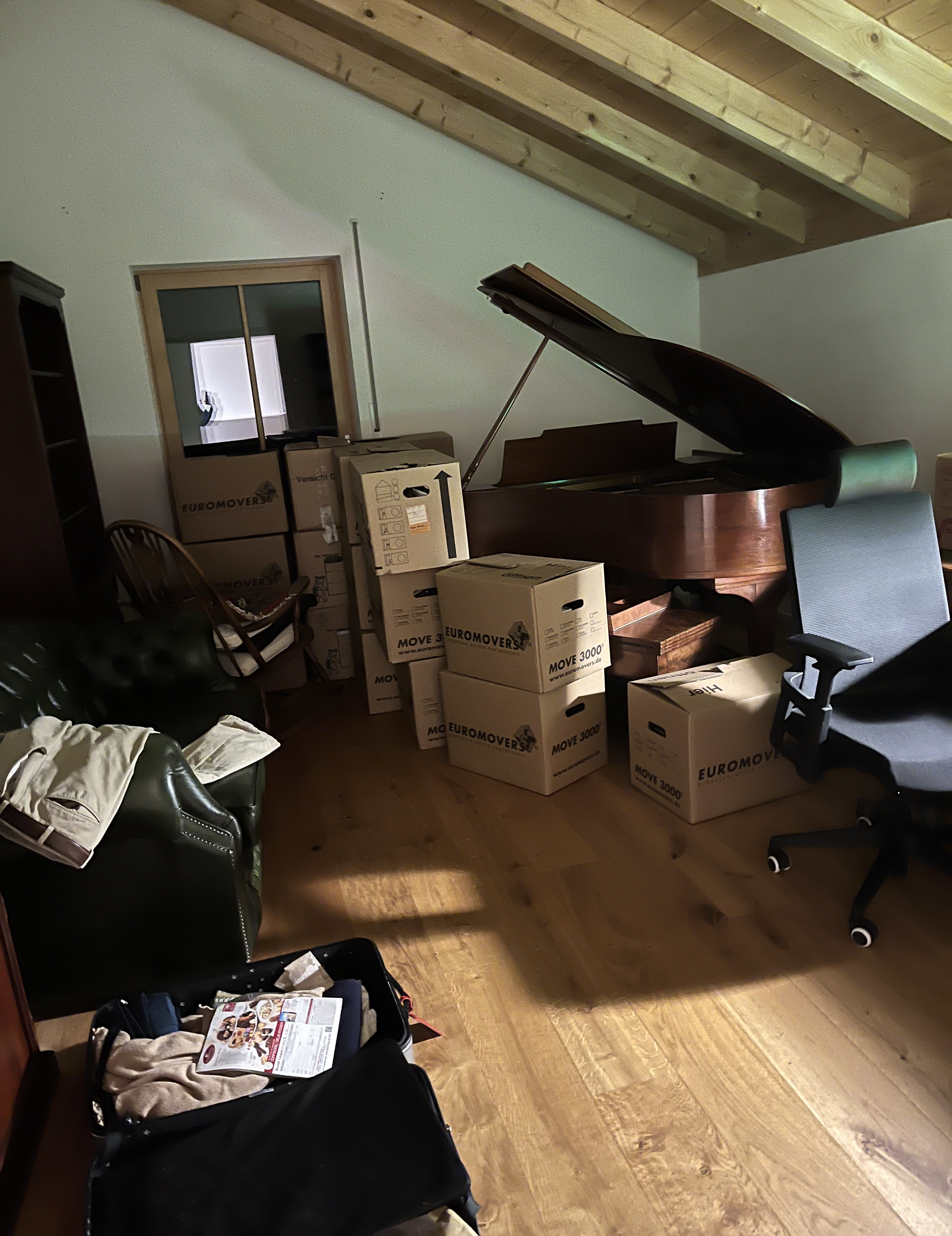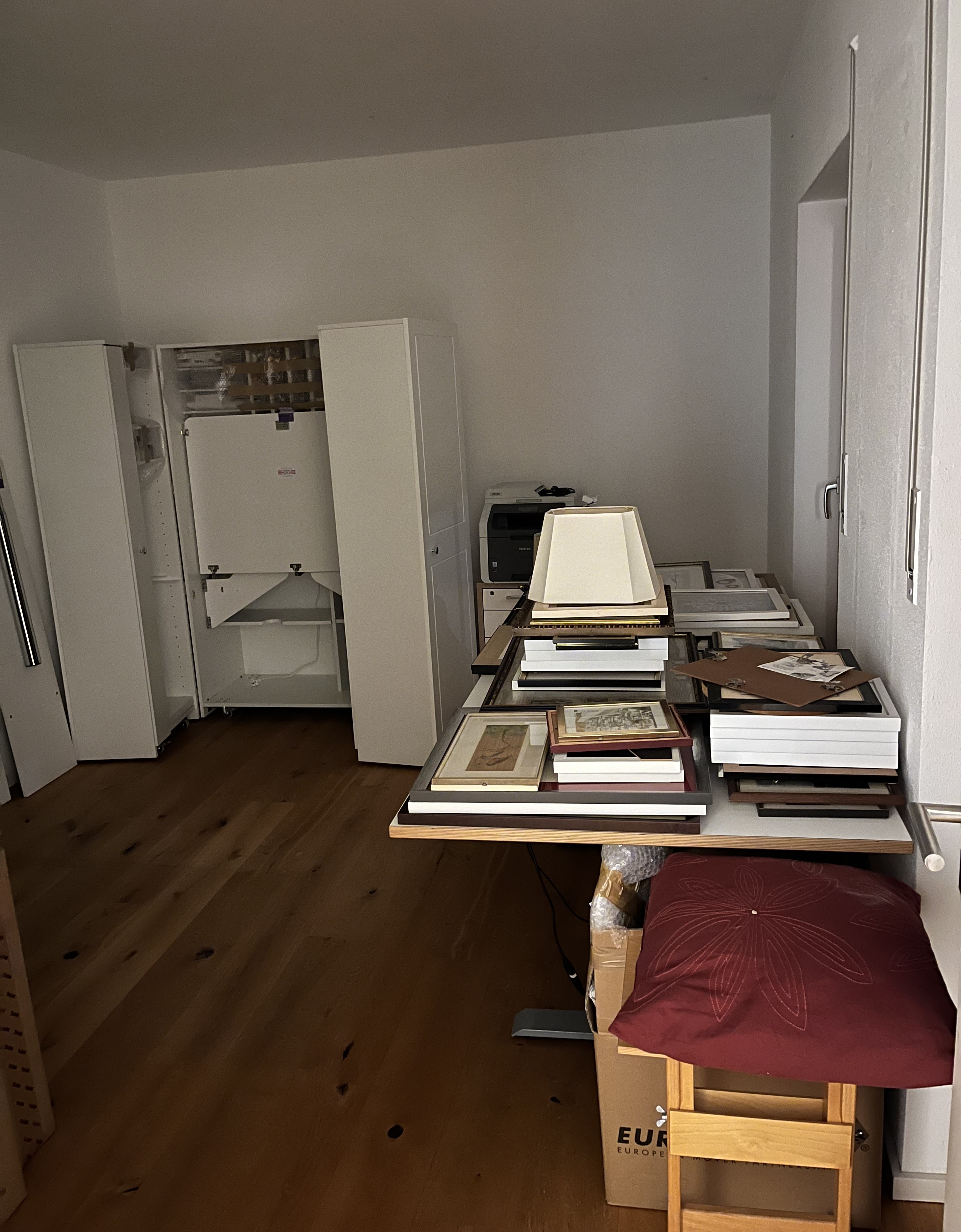If you’ve known me for a long time, you know one of my favorite past-times is moving furniture around. I love changing furniture around in a room. I used to do it every 6 months in my bedroom at my parents house. Once I moved into my own apartment(s), I would switch things around sometimes weekly. I liked the chance to sit somewhere else and look at a room from a different perspective. I am pretty sure this particular “hobby” of mine comes from having moved every 2 years for the first part of my life. Changing surroundings is just somehow in my blood. So anyway, on move-in day I was standing in the atelier and was not a happy camper.