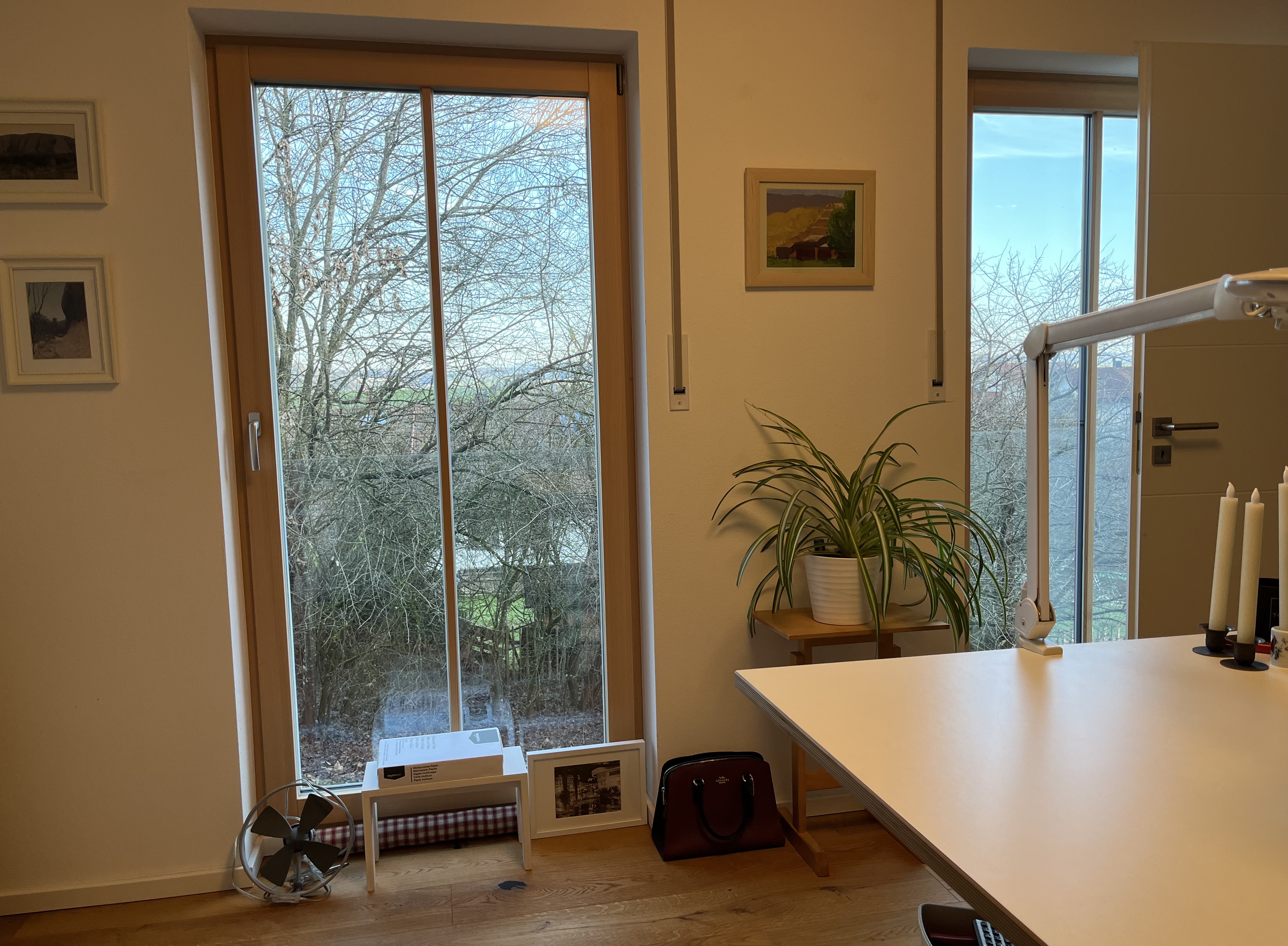 I recently discovered a great minimalist youtube channel (Benita Larsson). She not only discusses how to lead a minimalist lifestyle; she also has some really nice suggestions regarding making a home environment “gemütlich” (German for cozy) in the darker months of the year. And, the 3 candles to the right of the good luck tree are part of this effort. In her videos, Benita shows a mixture of candles – flameless and real. I had never really thought about battery-powered candles until I was watching one of her videos – such a great idea! Now, when the fog gets me down, I just turn them on and enjoy the flickering of the “flame” without the smoke and smell.