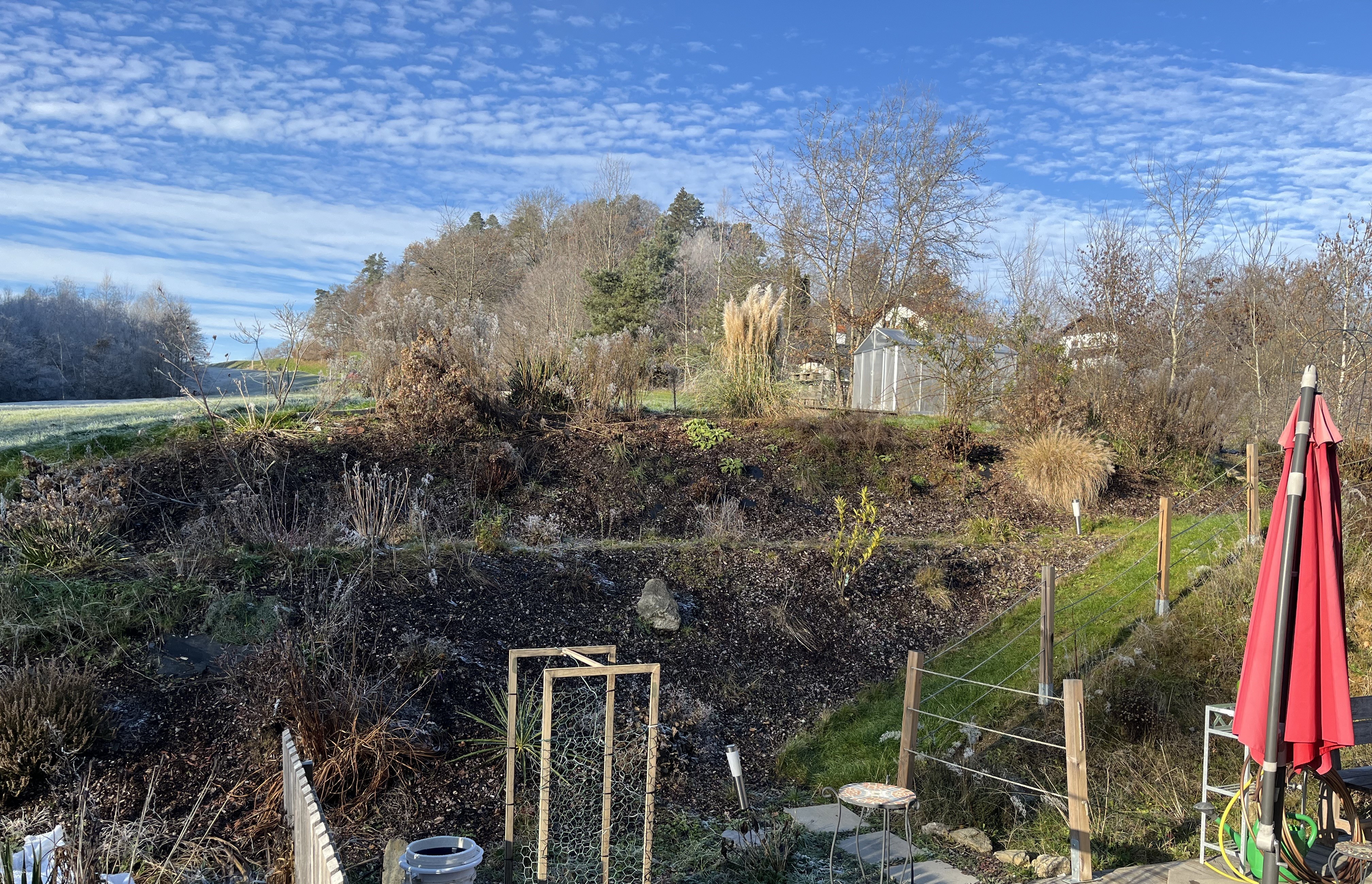The other pleasant surprise is the weather. Our old house was at a lower elevation and closer to the Danube. You remember those posts about the “universe-swallowing” fog? Well, in this new house? Not a problem. OK, when all of Germany – or Bavaria – is under fog, so are we. But, our elevation seems to be high enough that we escape most of the regional Danube fog. In the past, if fog was predicted we got totally socked in. Now, not so much; in fact, we check the online webcams in Straubing on days when we have sun. Can you say Schadenfreude? 😉