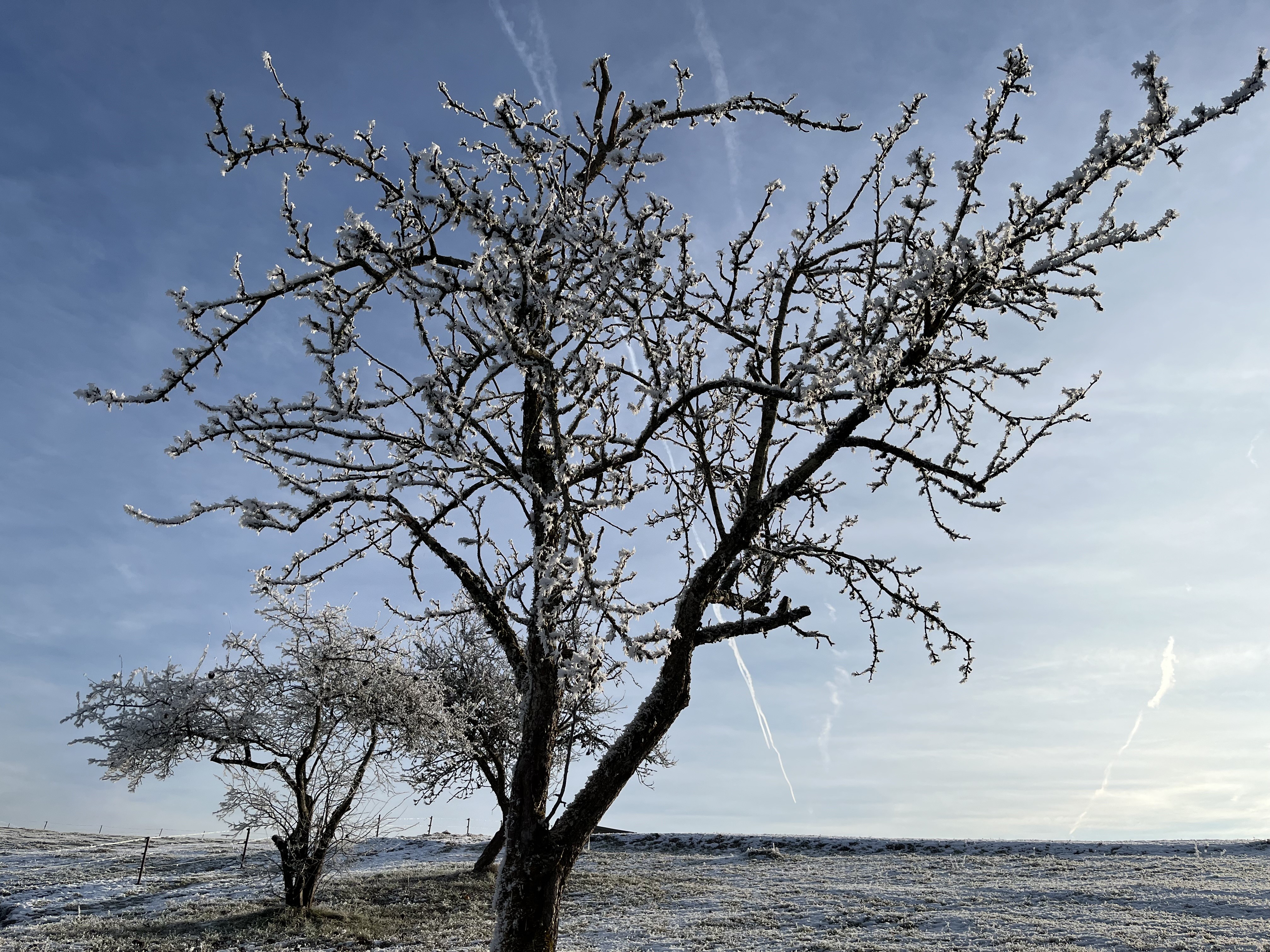 We got ourselves bundled up, got the right shoes, finally located the hiking poles, synchronized our watches (does anyone do any kind of sport these days without it being monitored??? ;-)), and headed out. About 25 minutes later we had to turn back. The hiking paths were totally iced over and even with the spikey hiking poles, it was impossible to get past a certain point. We hadn’t counted on that. It has been so long since we experienced a “real” winter with lots of snow. In the past two weeks, our temperatures have been on a kind of roller coaster ride and the effect of Föhn (an unseasonably warm wind that comes up from the Alps / https://en.wikipedia.org/wiki/Foehn_wind) caused much of the snow to melt and then refreeze overnight (crystal clear skies at night). And, some of the hiking paths go through and/or along woods, whose shade means that the snow turns hard, crusty and icey. So, the two things together make it so that, unless you have crampons (!!!), you can’t really navigate the iced-over patches. Oh well. All good things come to those who wait, right? So, we just have to wait a little longer.