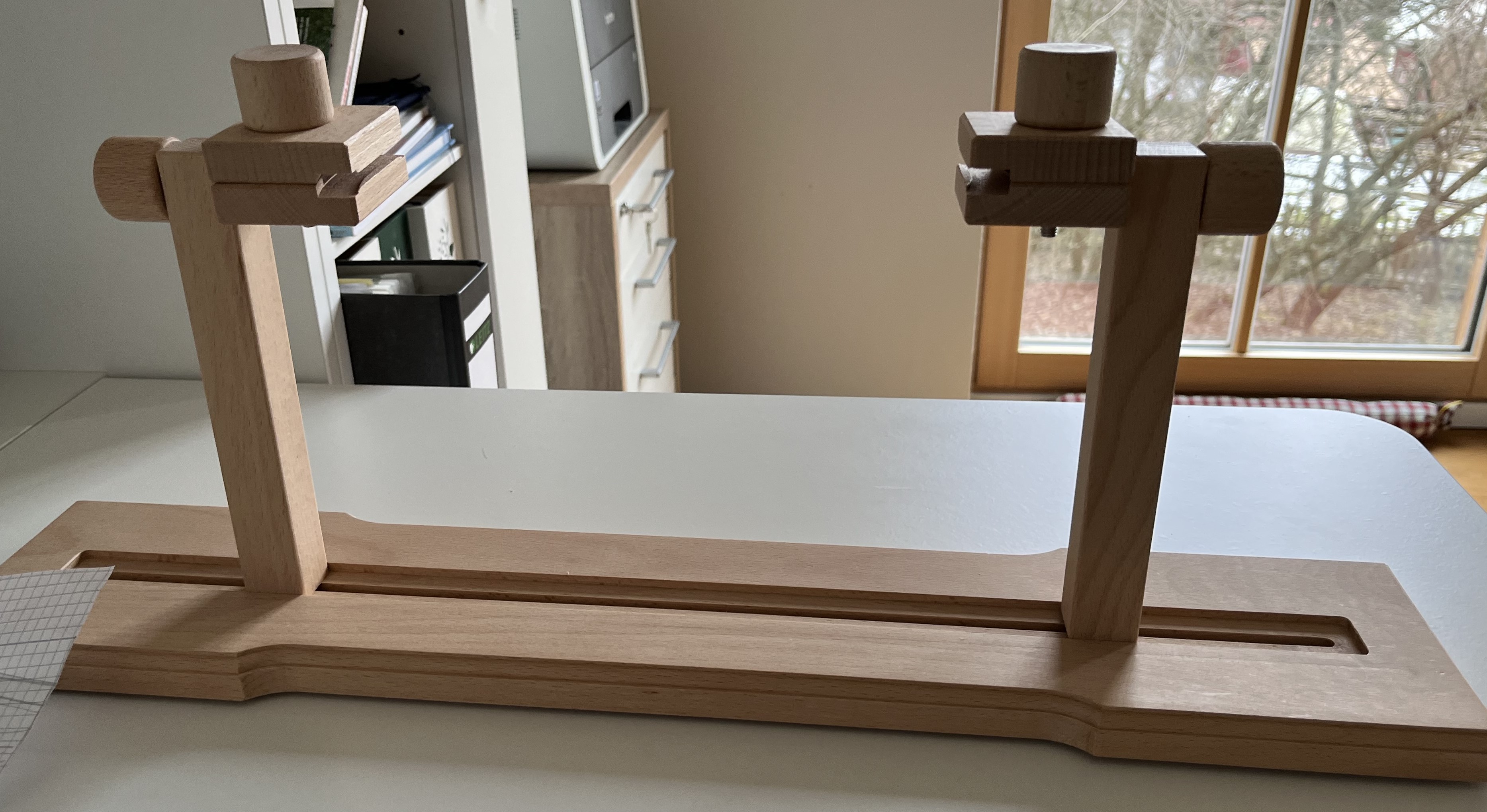 Before we moved, I treated myself to a new tool for embroidering. I have lots of different sizes of embroidery hoops but find it annoying sometimes to have to use my left hand to hold the hoop. When using long floss, I like to use my left hand to keep the floss from bunching up or getting tangled. To do this, I’d place the embroidery hoop on a surface (desk or table), balance it so that the area to be embroidered hung over the edge of the surface, and then weight the other side of the hoop with something so that it didn’t tip over.
