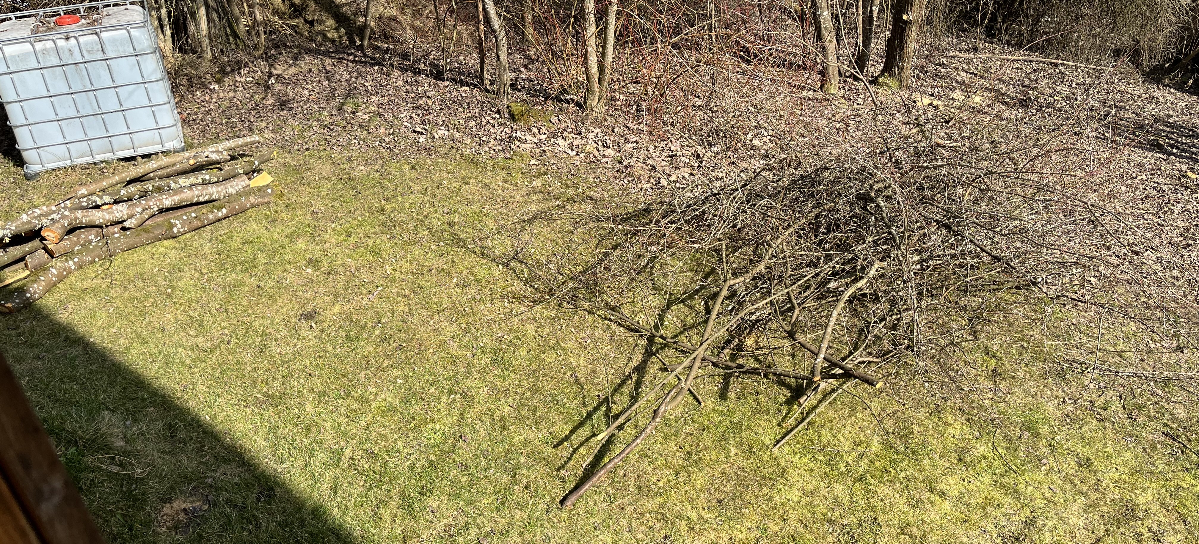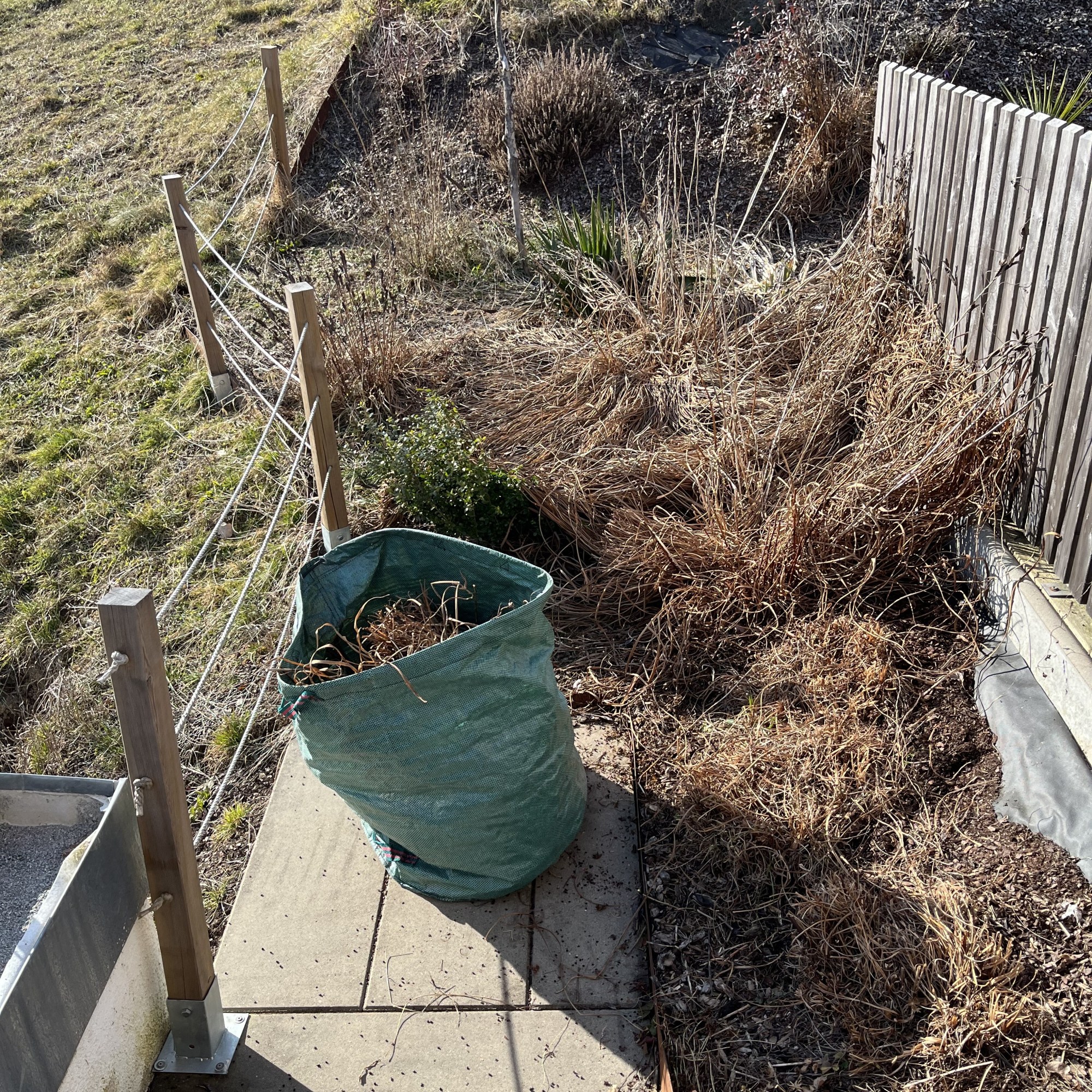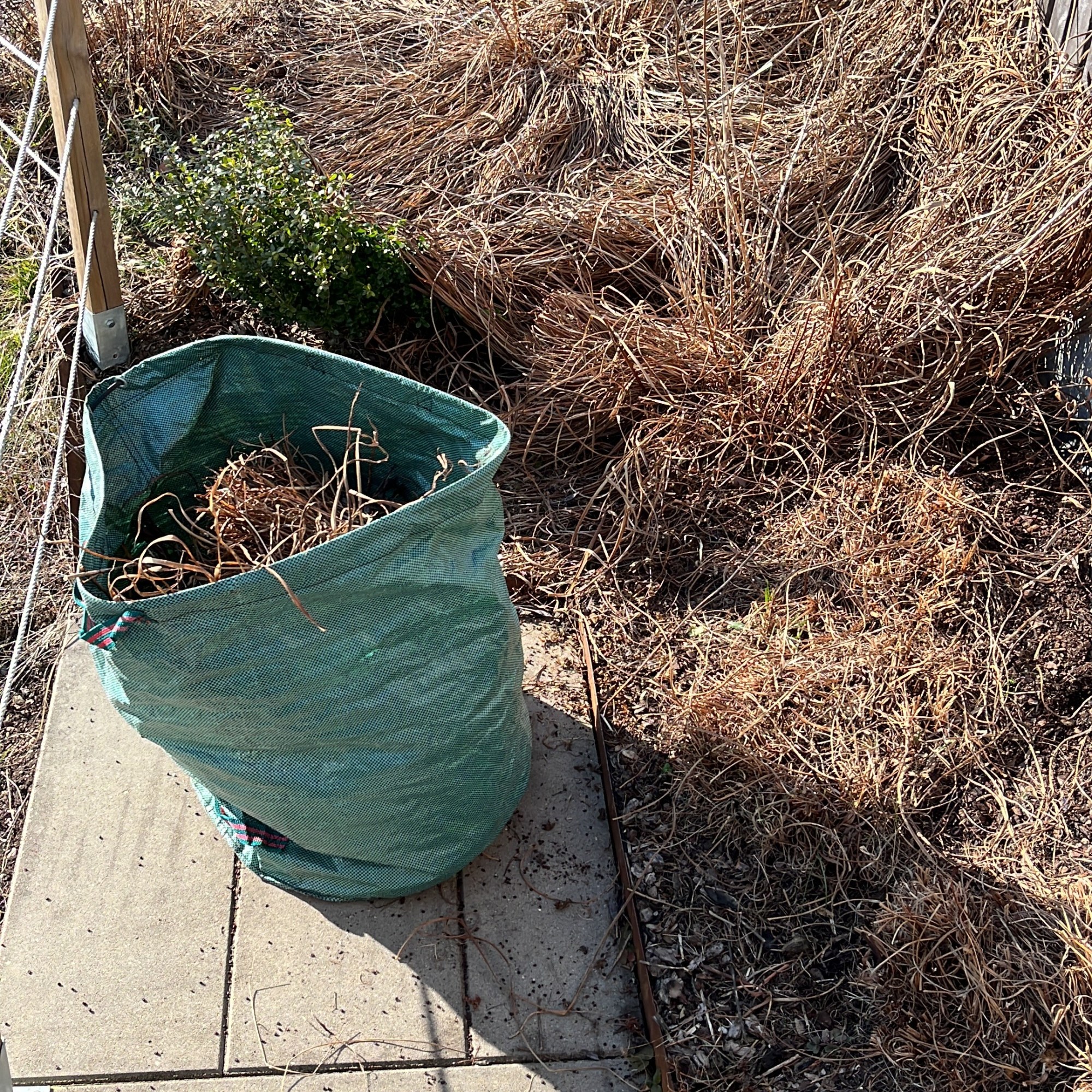 I thought having to mow 25 cm long grass was going to be the worst of it … how wrong I was! The good news in all of this is: at least I don’t have to worry about driving my garden waste to the bio-dump. Thankfully, the yard is big enough that I can set aside a small corner to dump stuff. We also have two compost containers. So, there really should never be a need to truck stuff away. You may not think this is as helpful as it is. In the old garden, if the garden waste sacks were full, that was it. Work had to stop until they were emptied … at the bio-dump. Here? I fill a sack; I empty a sack and continue. It makes for faster work.
