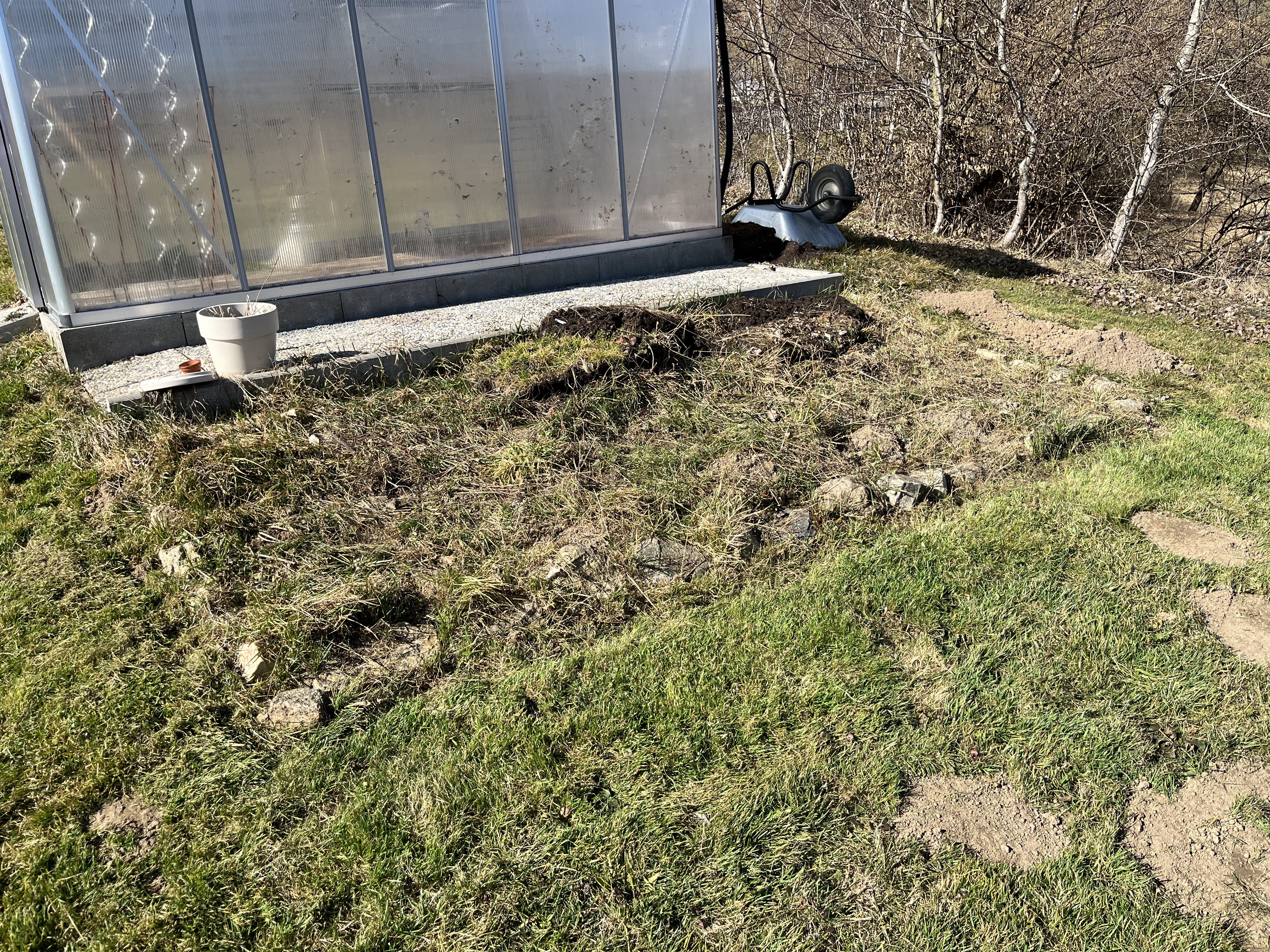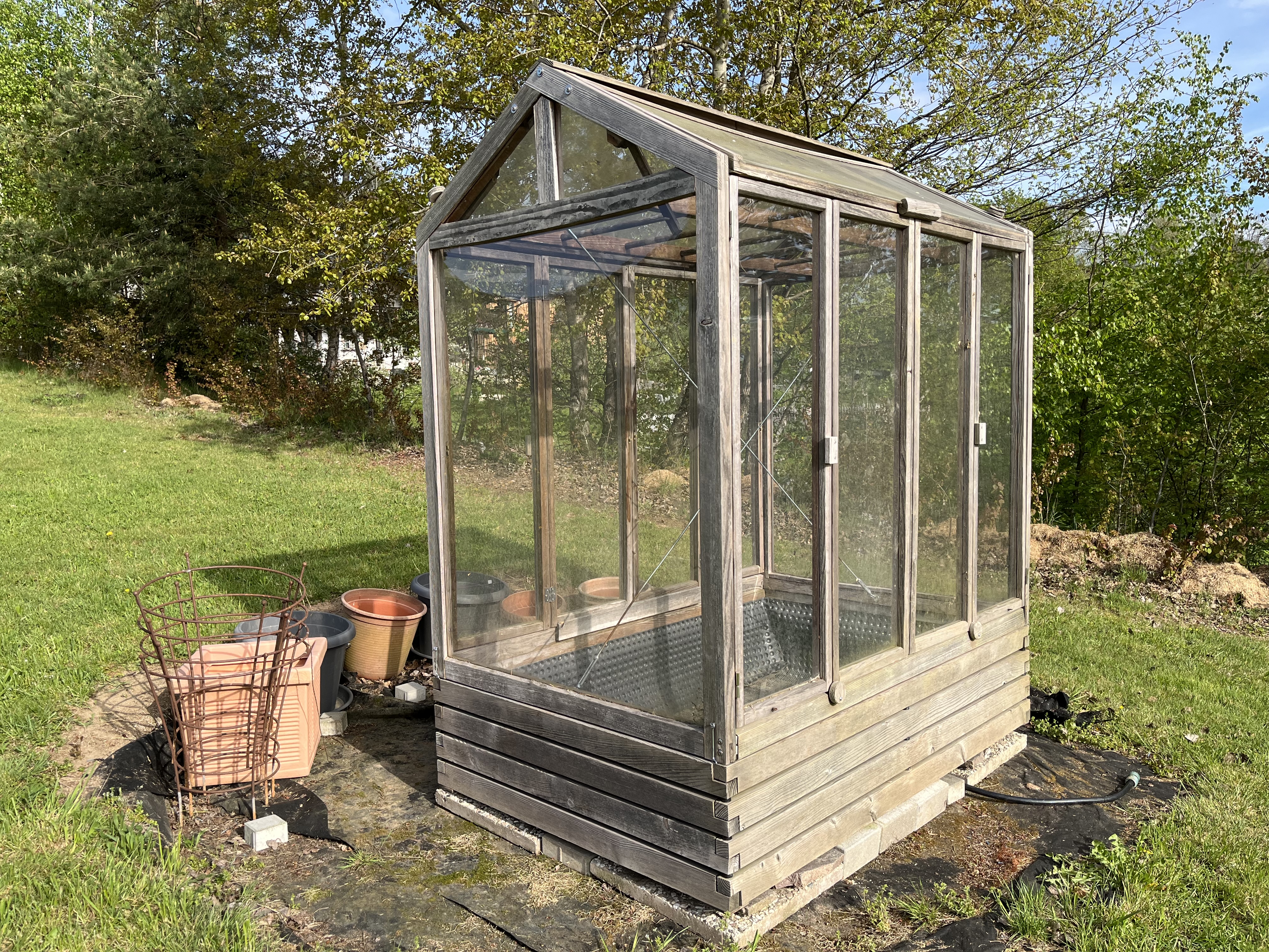 As you know, I decided not to buy raised beds this year, choosing instead to first live with the property for four full seasons to see what makes sense. More and more, I am beginning to realize that the (proper) greenhouse is useful but maybe not in high summer. I am just not experienced enough yet on how best to use this “tool” but it feels like it would be too hot during the summer for most plants even with the roof vents open and leaving the door open during the days. It hasn’t hit even 27°C yet and there have already been days when it was stifling inside.