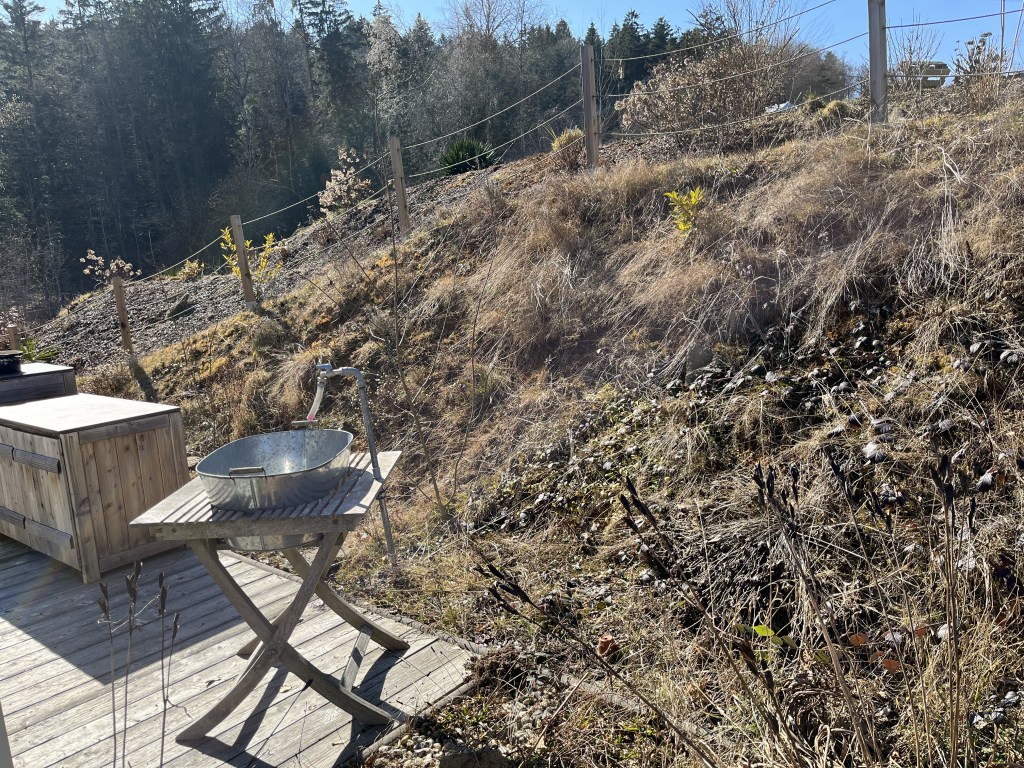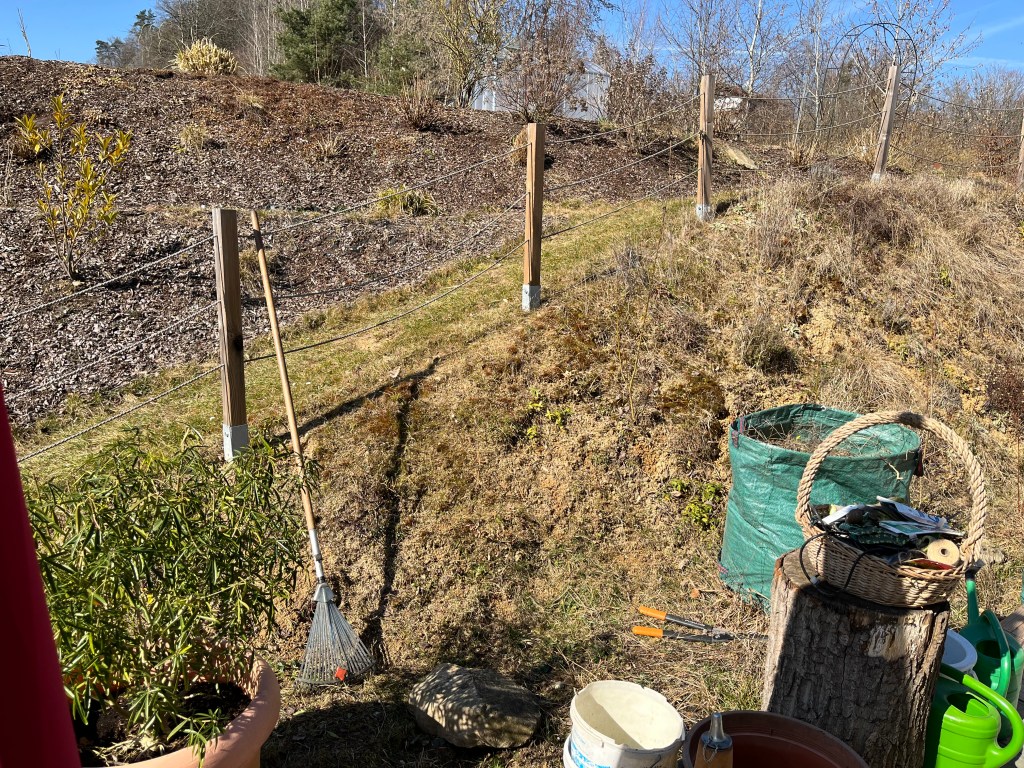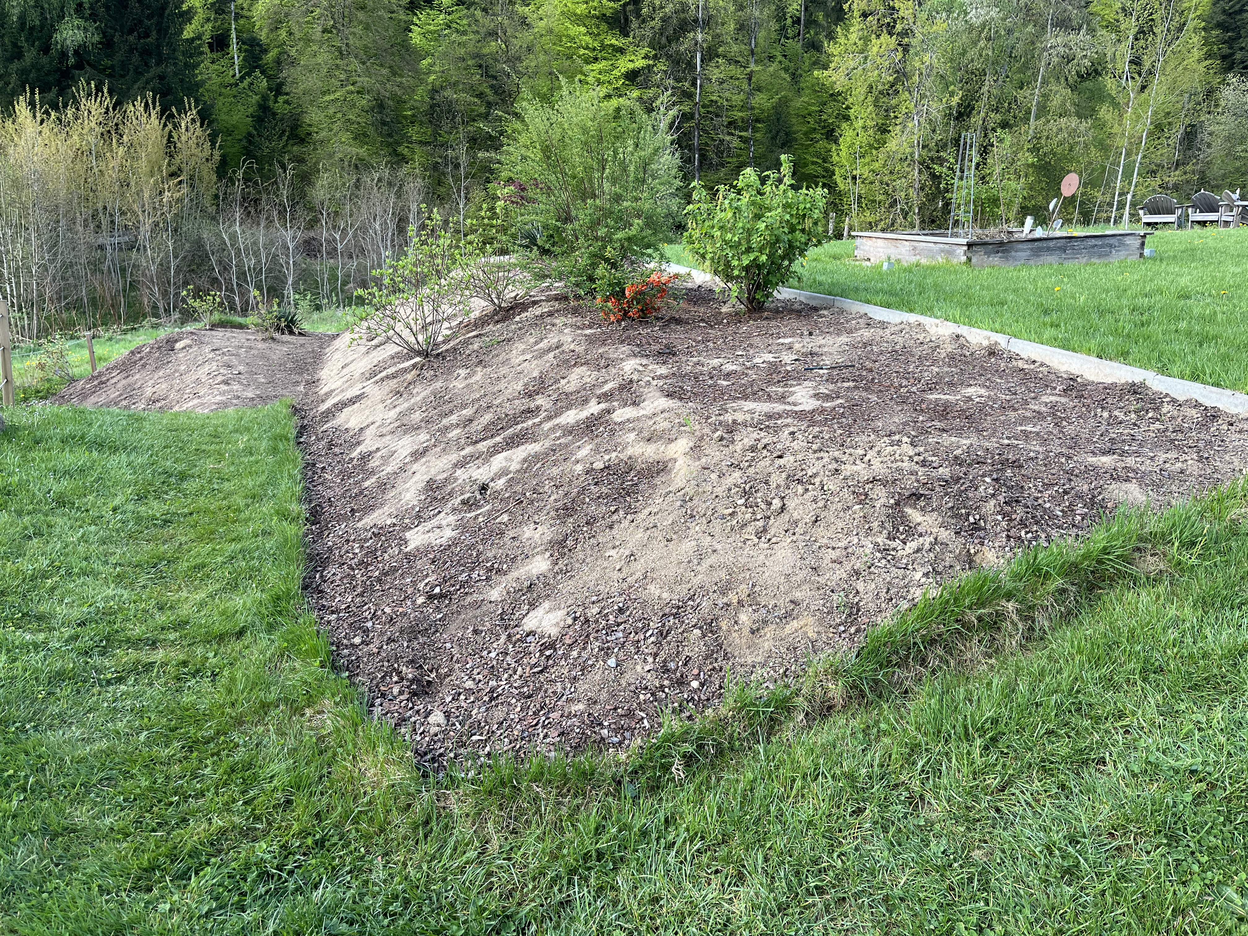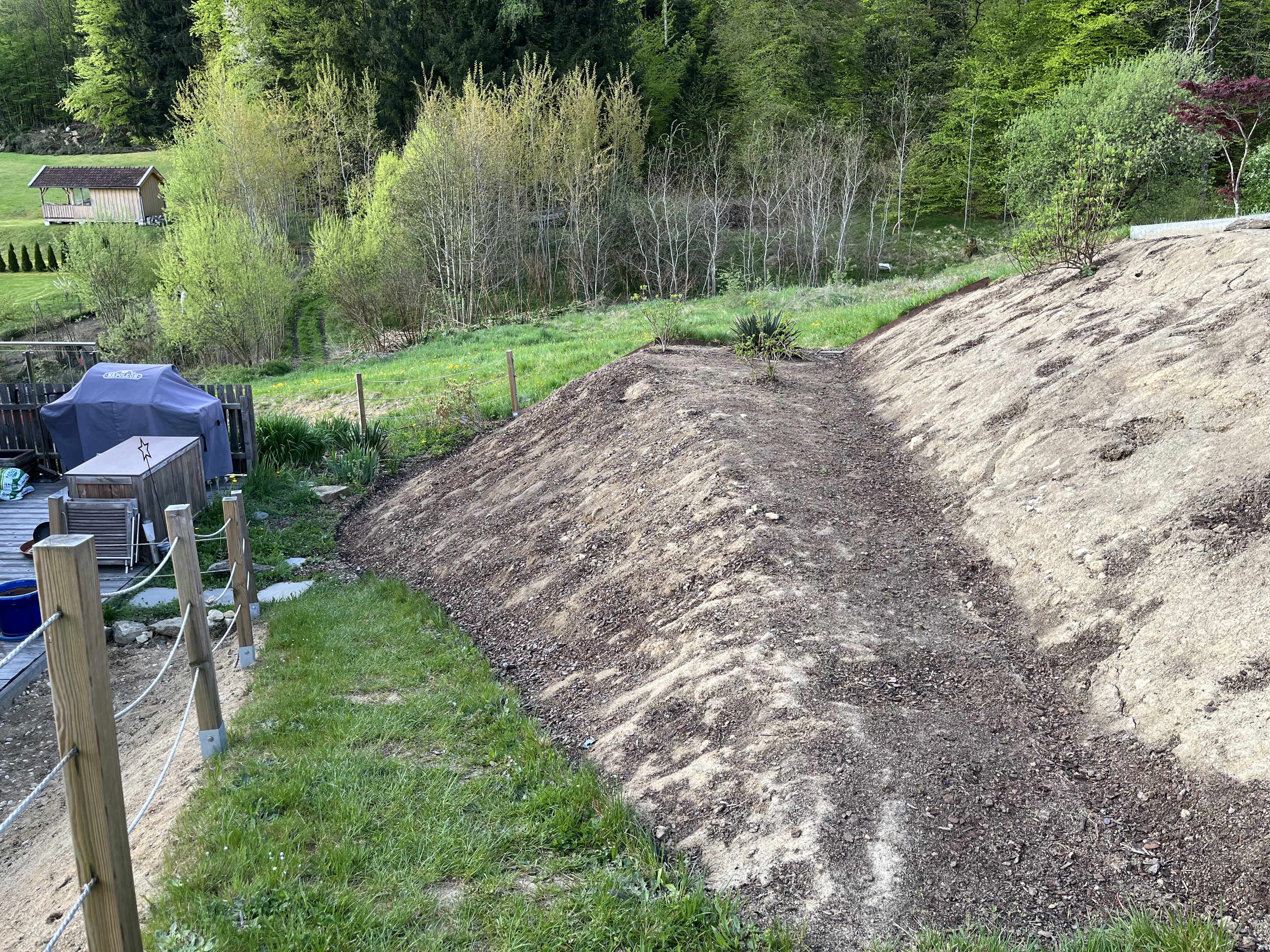 The final slope, the one immediately next to the terrace, still has to be planted but the tree branches have been put into place.