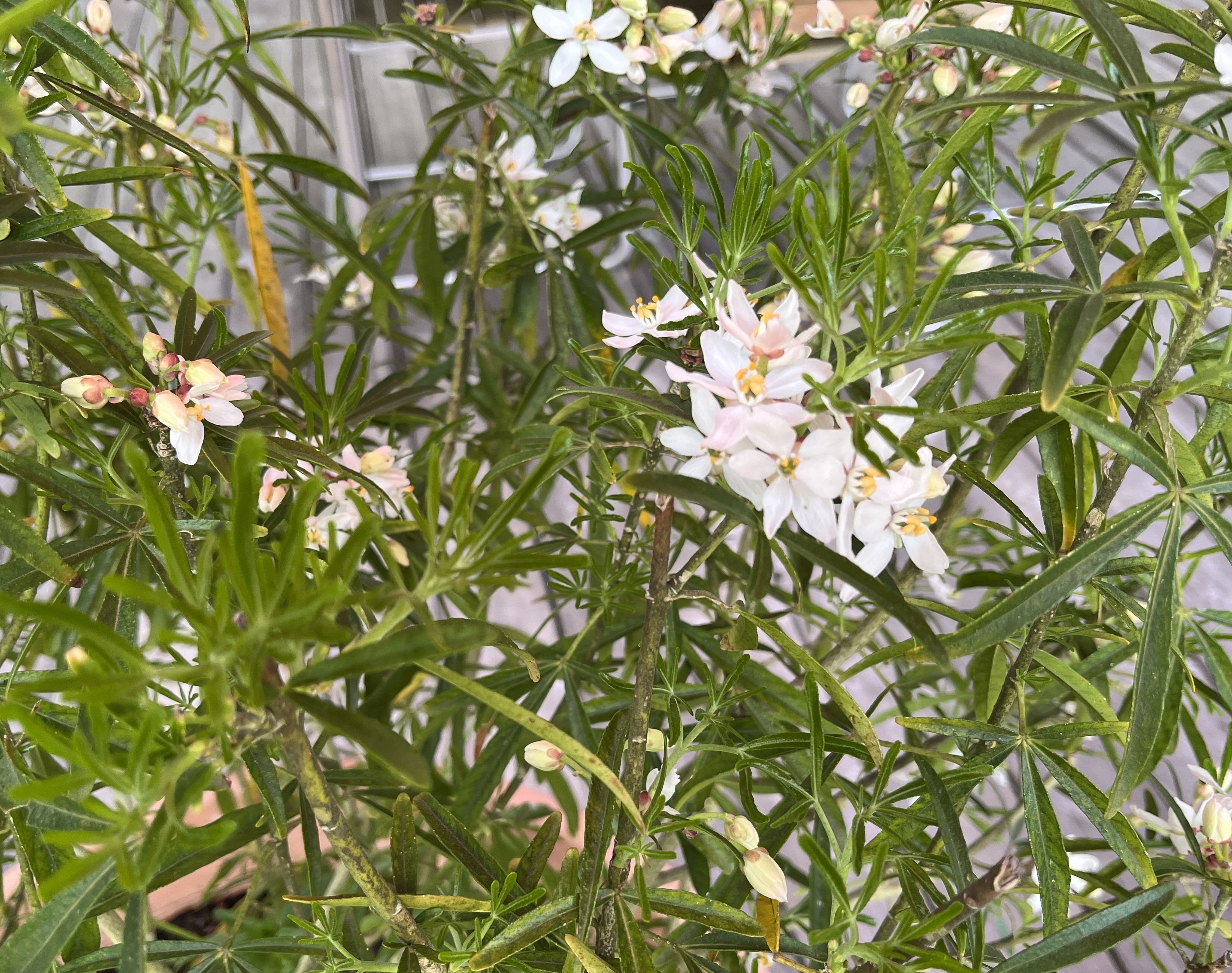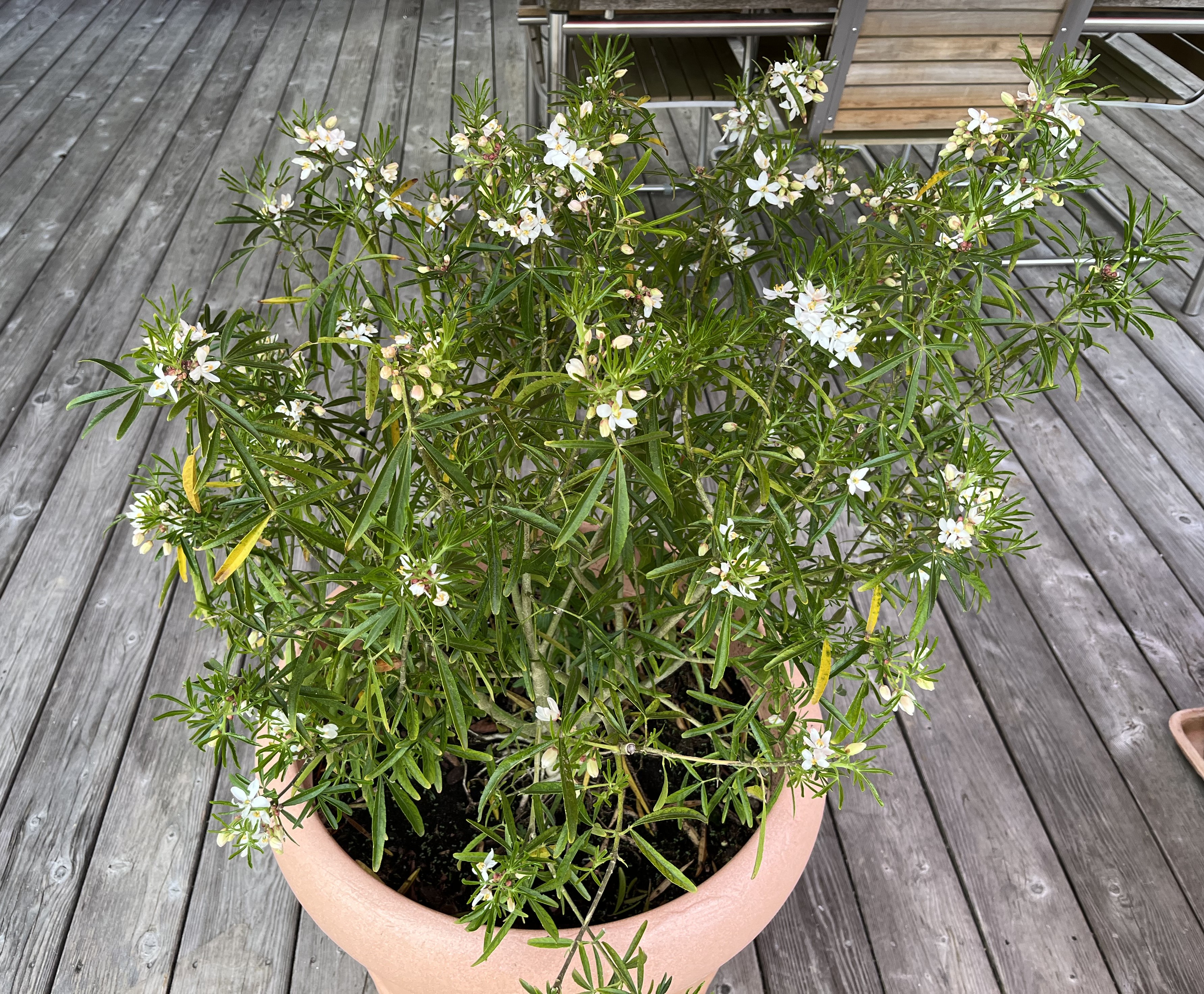 Thankfully, the Choisya survived the winter and that last nasty hardfrost in early April and is blooming away. Choisya is an “exotic” plant for this region and sometimes the insects just ignore plants they don’t know. Therefore, I was especially pleased to see that the wild bees (and other insects) have discovered it and visit its flowers regularly. I may get really adventurous and decide to plant it in the garden somewhere … yeah, gonna have to think about that a bit; there may be a way to store it in the greenhouse over winter instead. We’ll see.